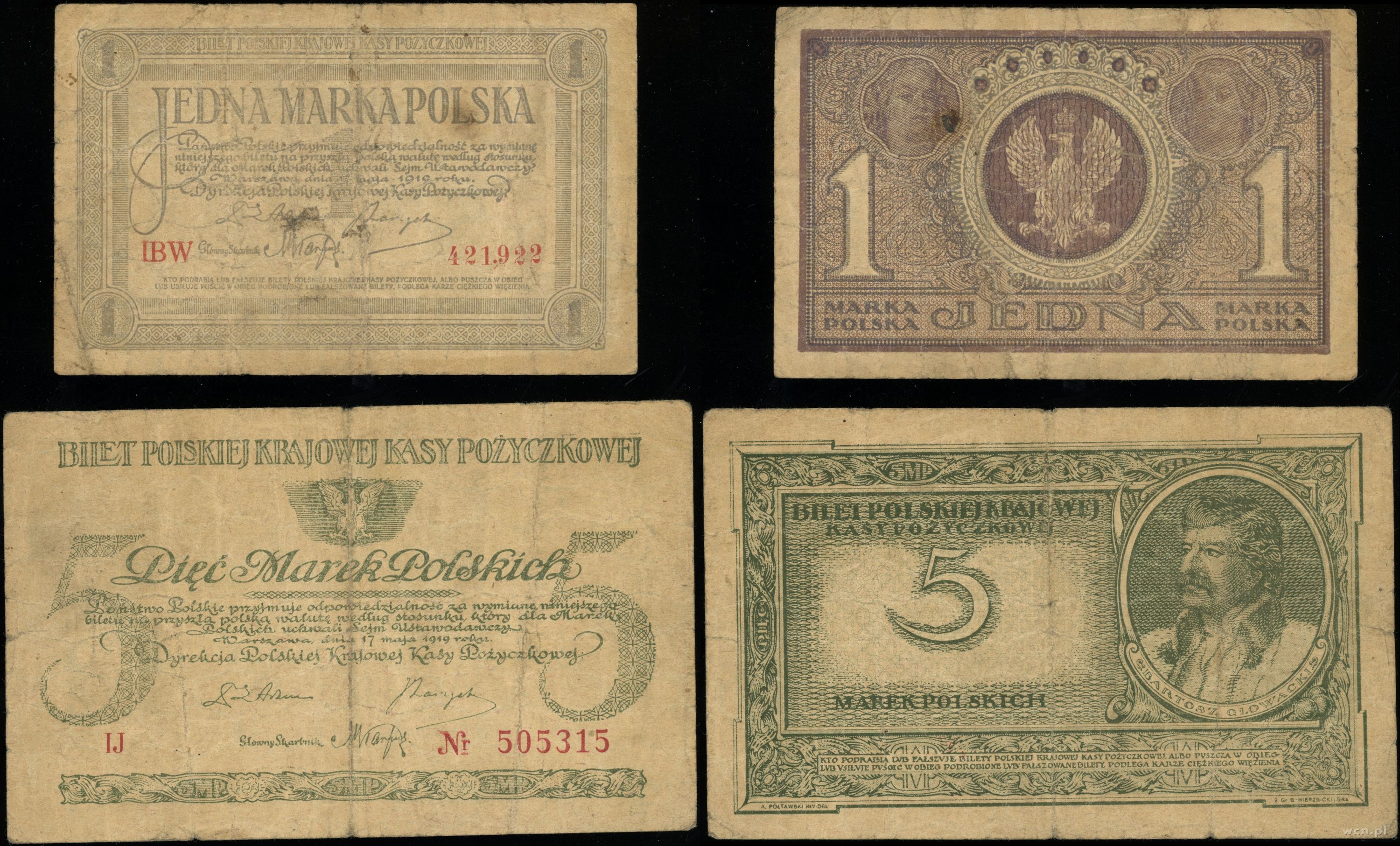 Polska, zestaw: 1 marka i 5 marek polskich, 17.05.1919