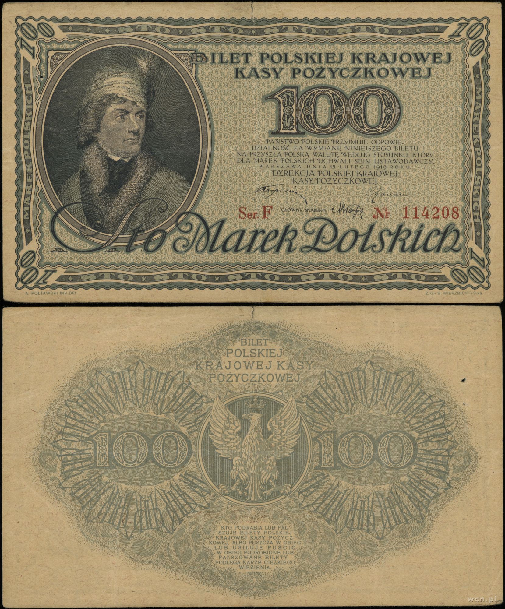 Polska, 100 marek polskich, 15.02.1919