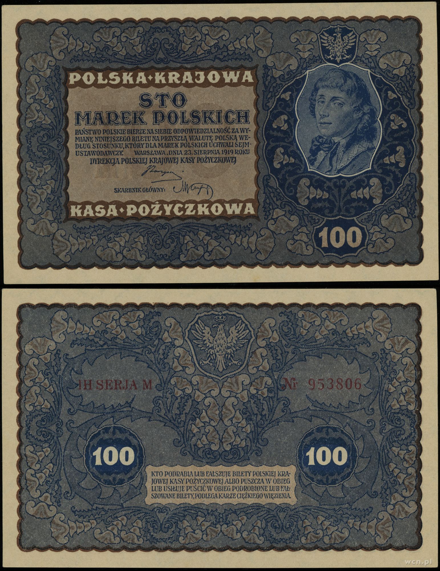 Polska, 100 marek polskich, 23.08.1919