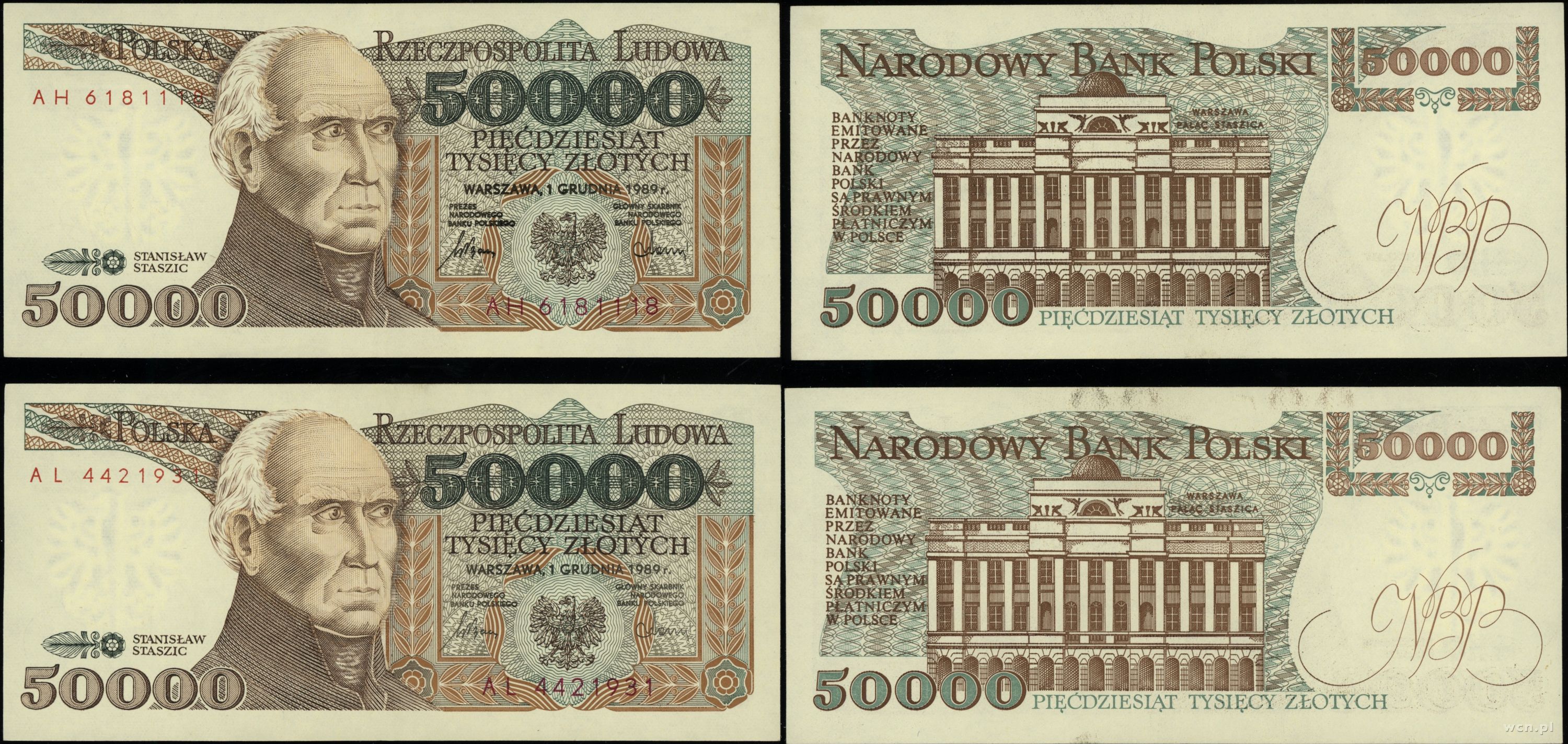 Polska, zestaw: 2 x 50.000 złotych, 1.12.1989