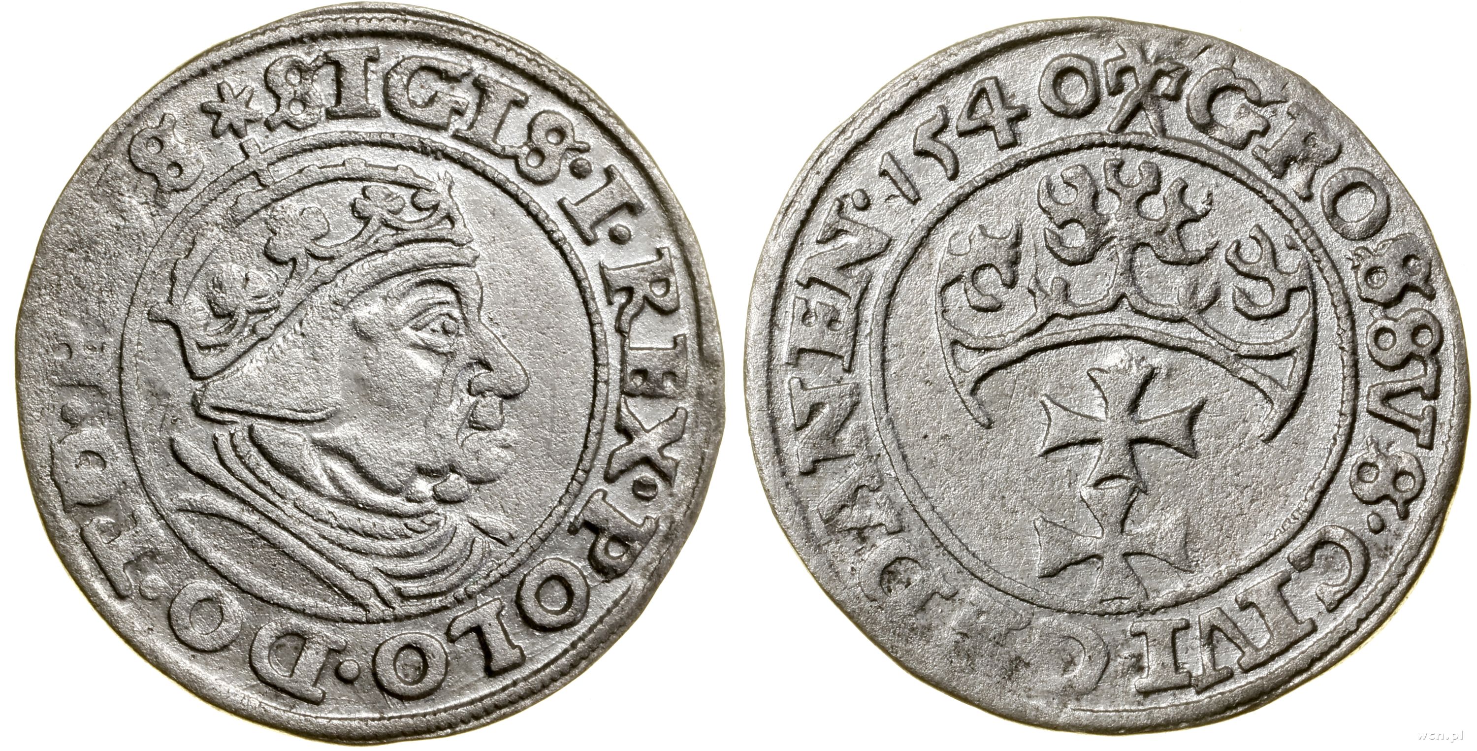 | Opis: | Polska - Zygmunt I Stary (1506–1548) - miasto Gdańsk, grosz, 1540, Gdańsk, na awersie końcówka legendy PRVS |