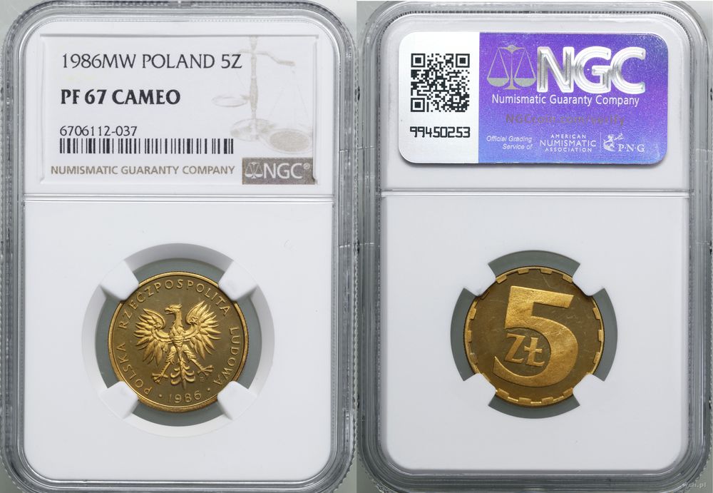 | Dodatkowe informacje: | wyśmienite, stemple lustrzane , w opakowaniu firmy NGC nr 6706112-037 z oceną PF67 CAMEO |