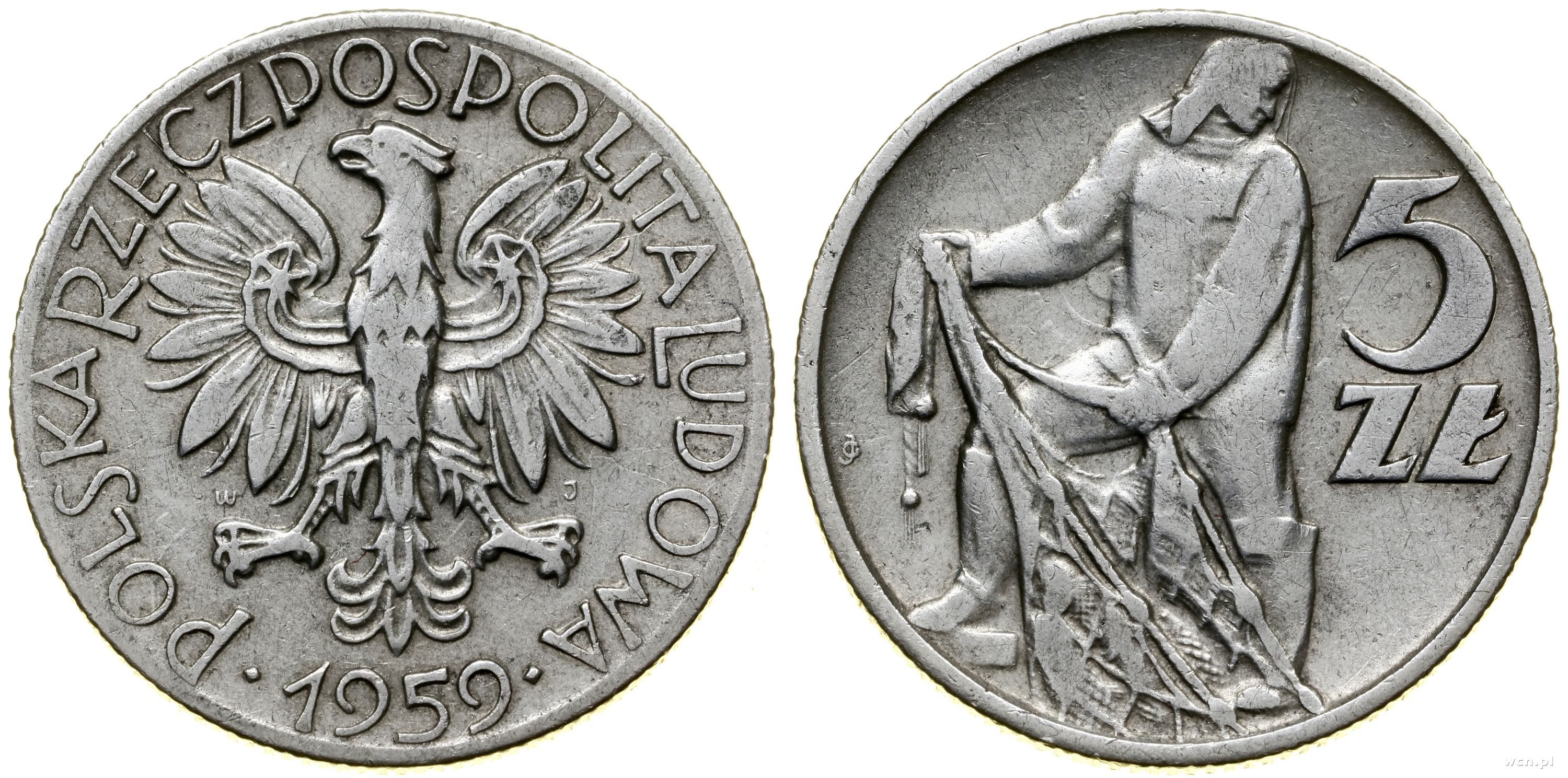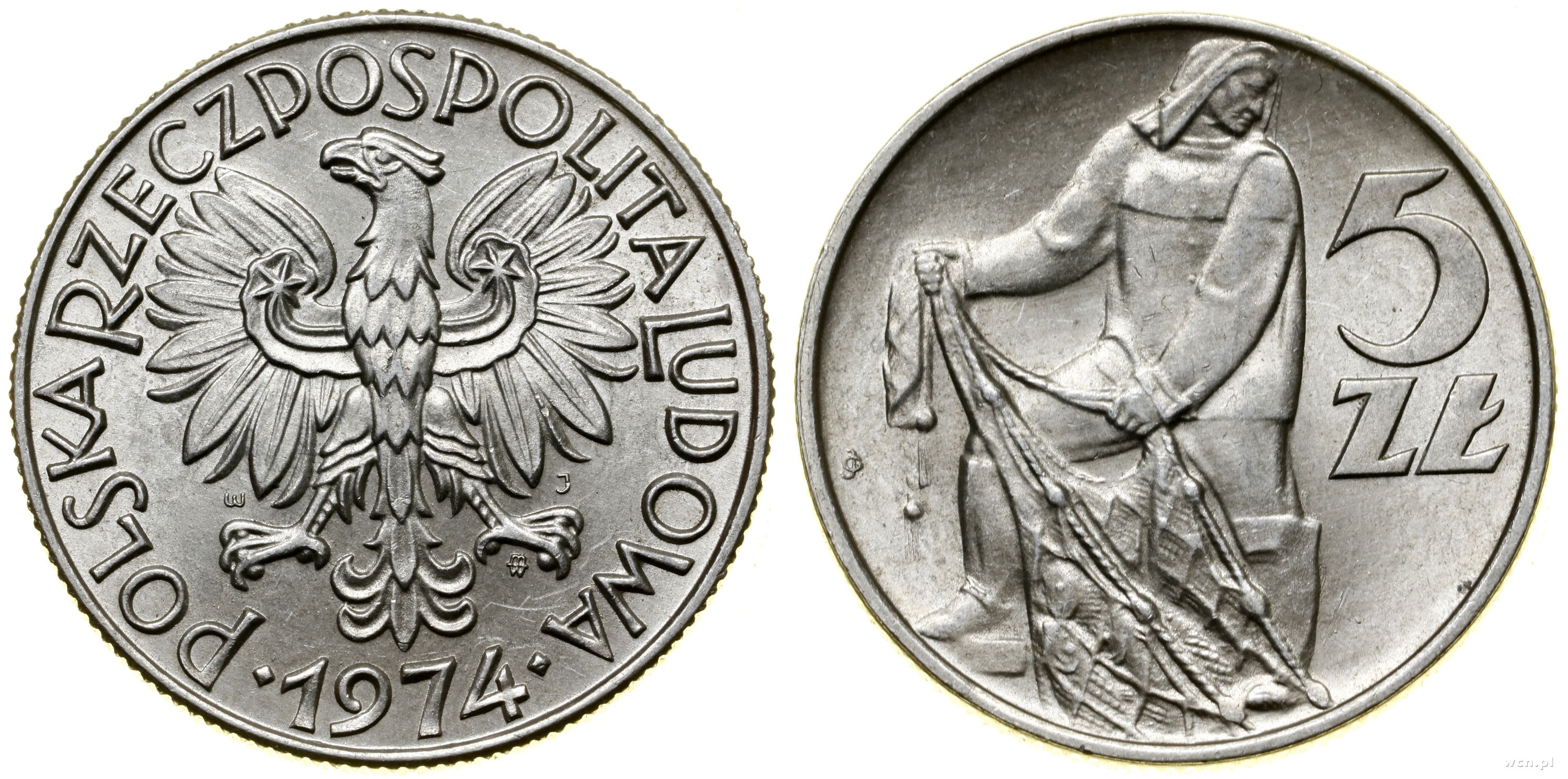Polska, destrukt monety o nominale 5 złotych, 1980
