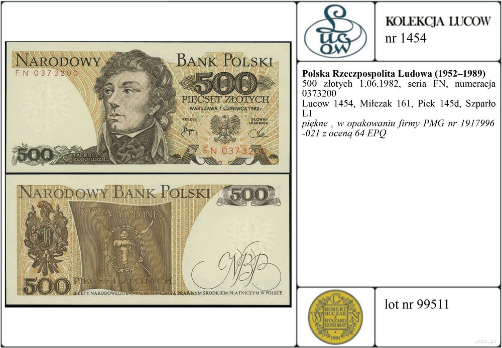 | Opis: | Polska - Polska Rzeczpospolita Ludowa (1952–1989), 500 złotych, 1.06.1982, seria FN, numeracja 0373200 |