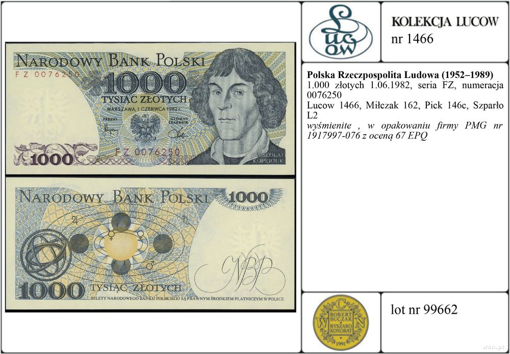 | Opis: | Polska - Polska Rzeczpospolita Ludowa (1952–1989), 1.000 złotych, 1.06.1982, seria FZ, numeracja 0076250 |