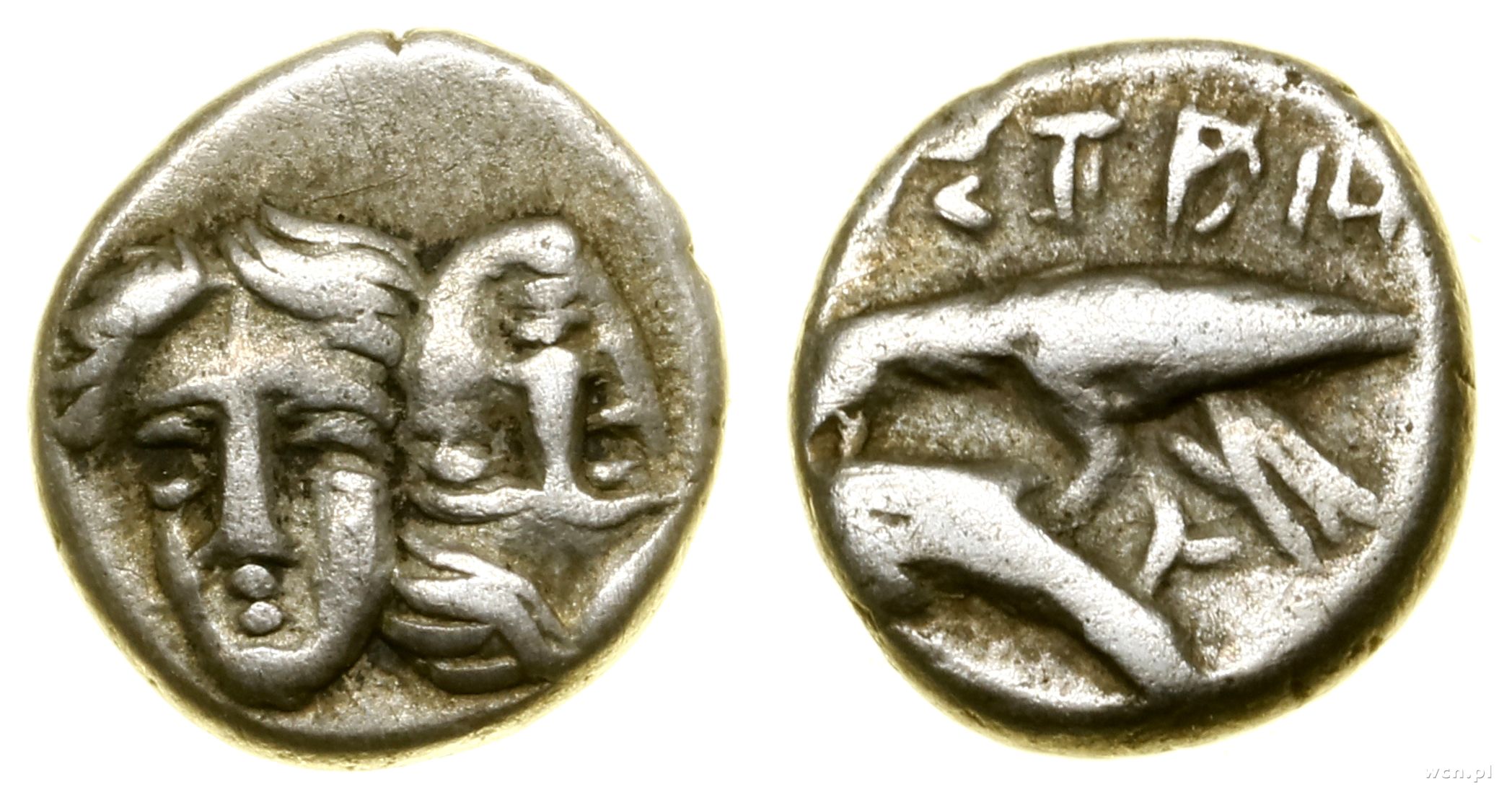 Aw: Protom dzika w lewo, Rw: W kwadracie incusum głowa lw... | III- |