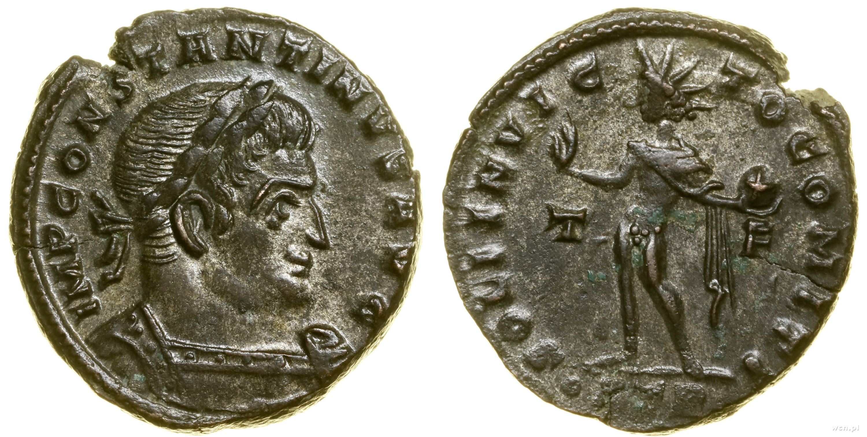 Aw: Popiersie w prawo, CONSTANTINVS IVN NOB C; Rw: Dwaj ż... | II |