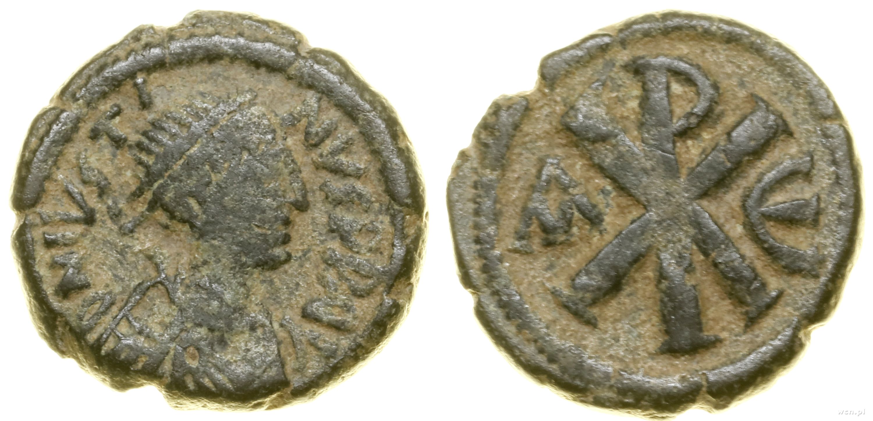 Aw: Popiersie w prawo, D N IVSTINVS P P, Rw: Chrystogram,... | III- |