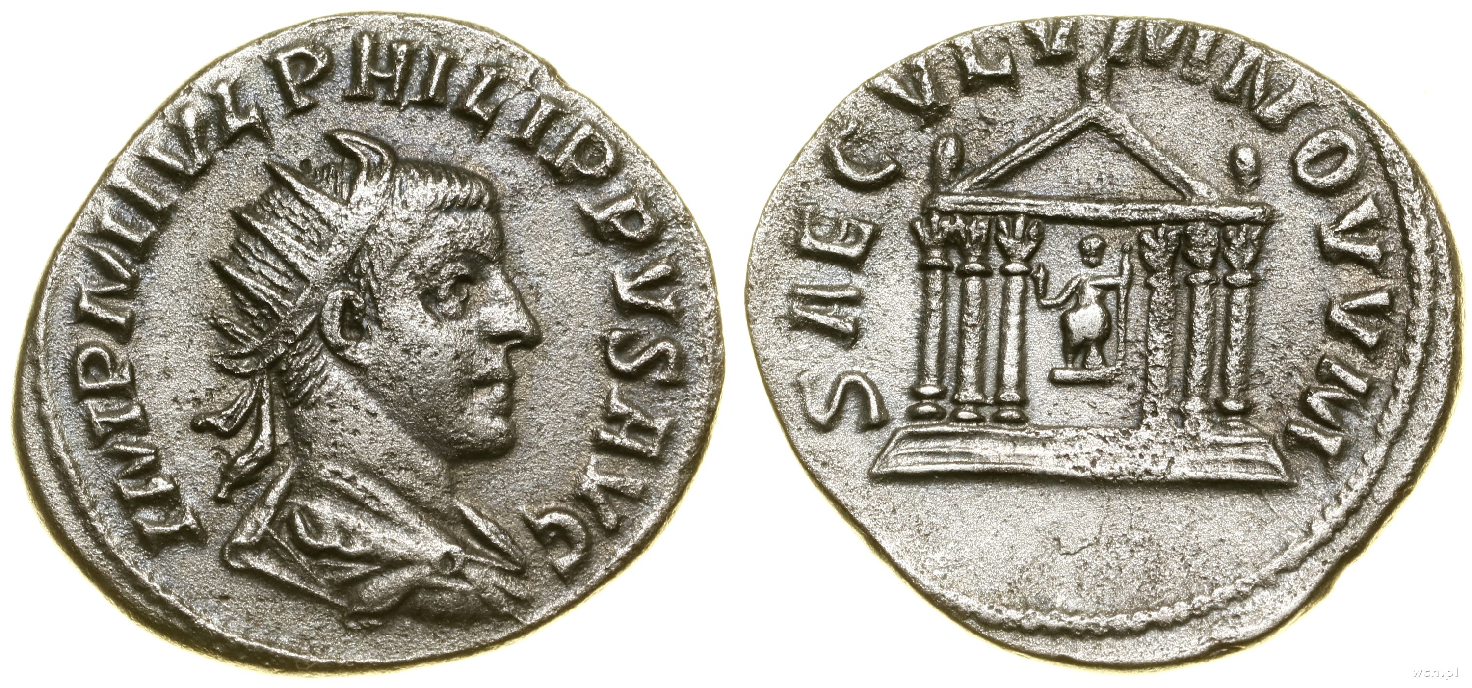 Aw: Popiersie cesarza w prawo, IMP PHILIPPVS AVG; Rw: Świ... | III |