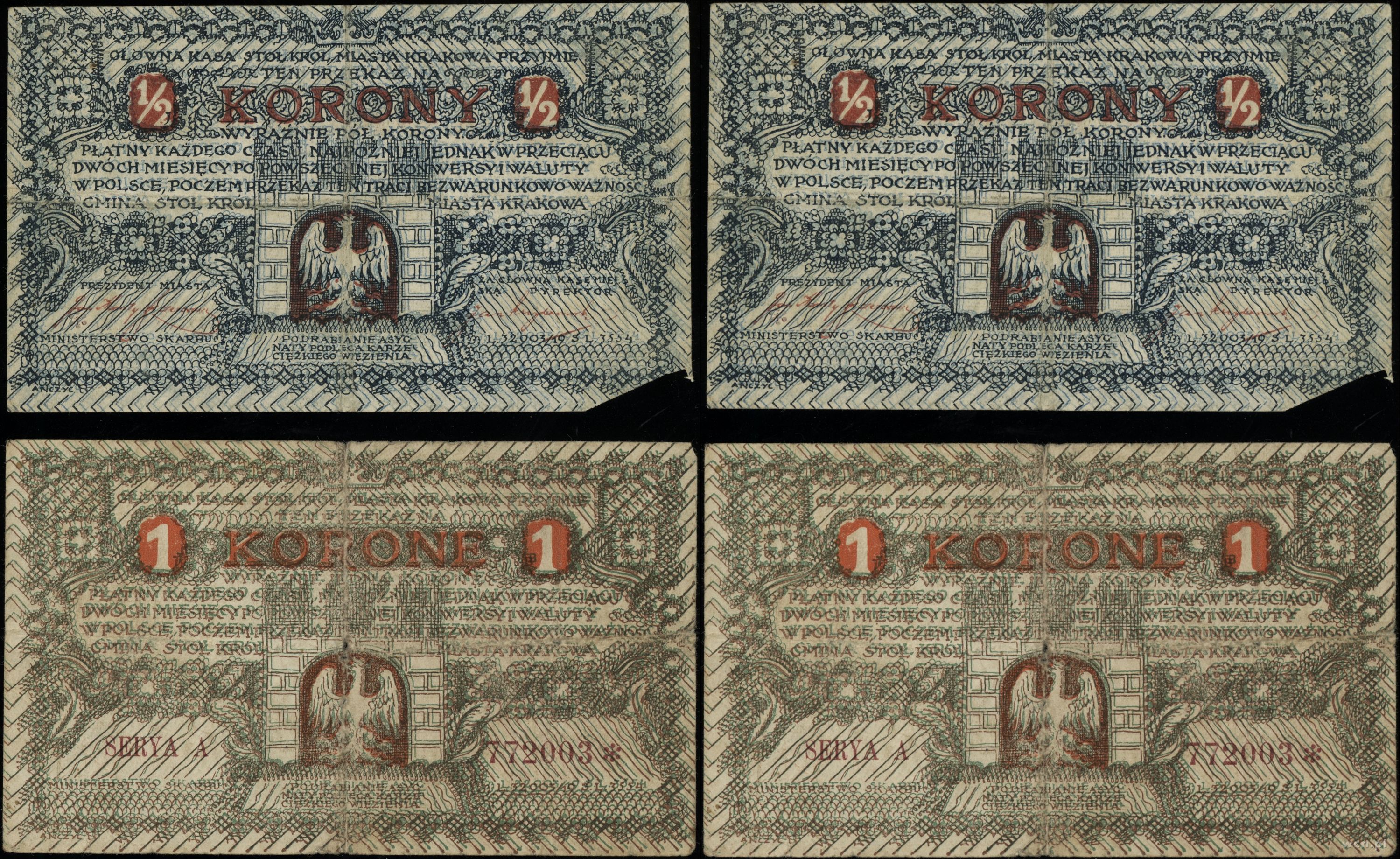Galicja, zestaw: 1/2 korony i 1 korona, 1919