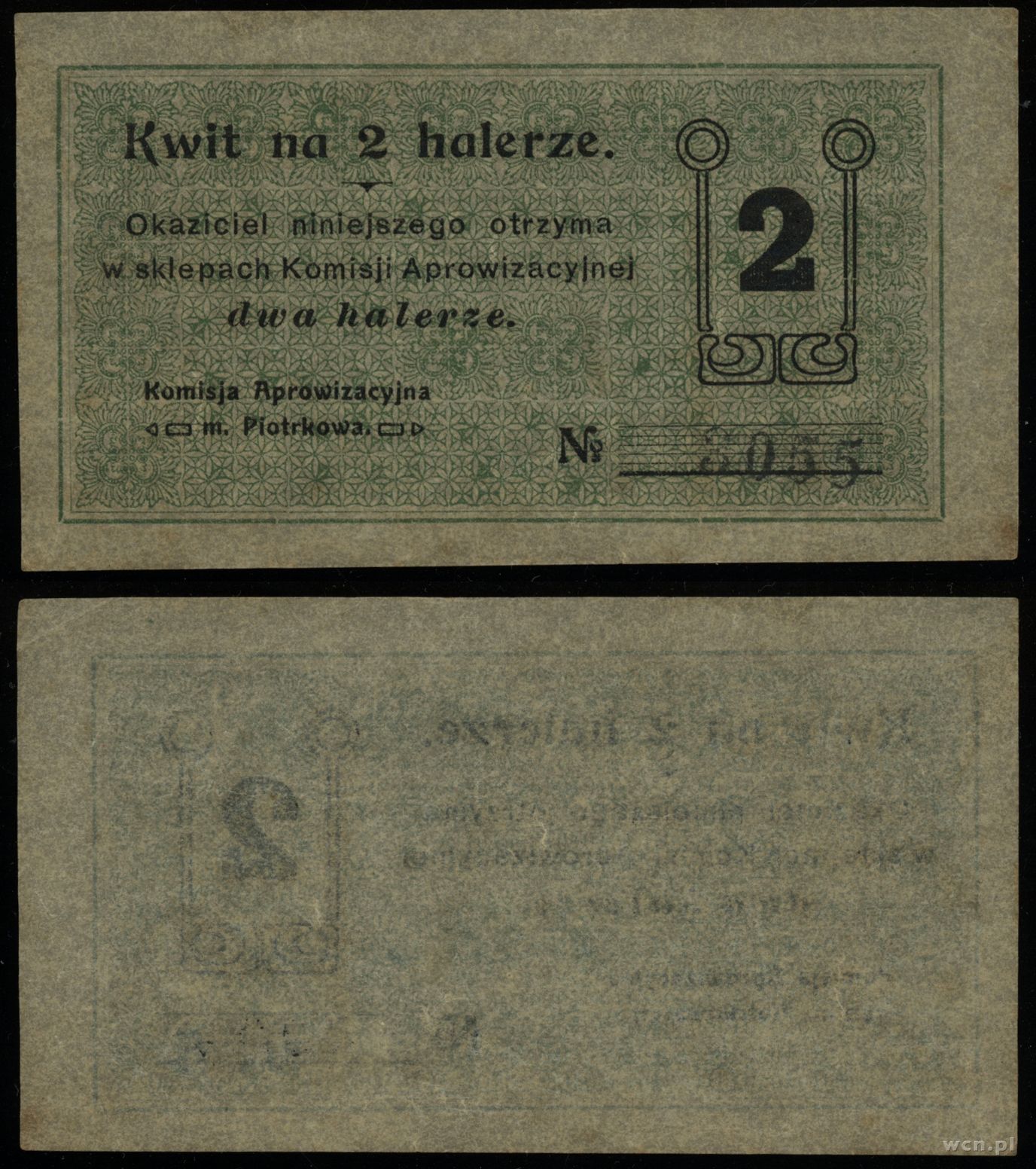 dawny zabór rosyjski, kwit na 2 halerze, bez daty (1917)