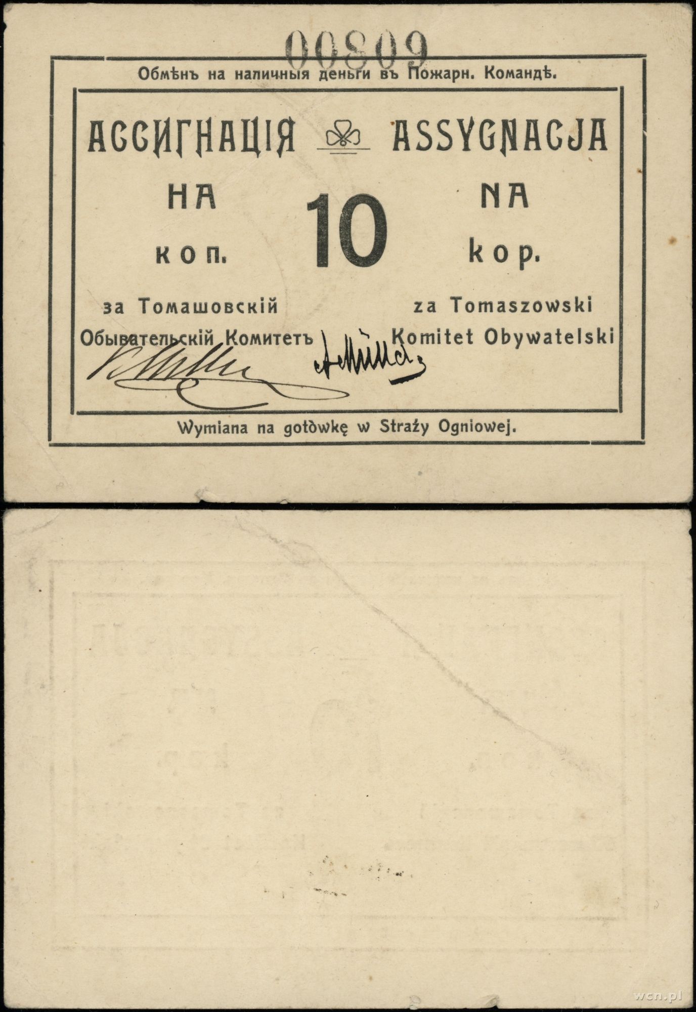 dawny zabór rosyjski, asygnacja na 10 kopiejek, bez daty
