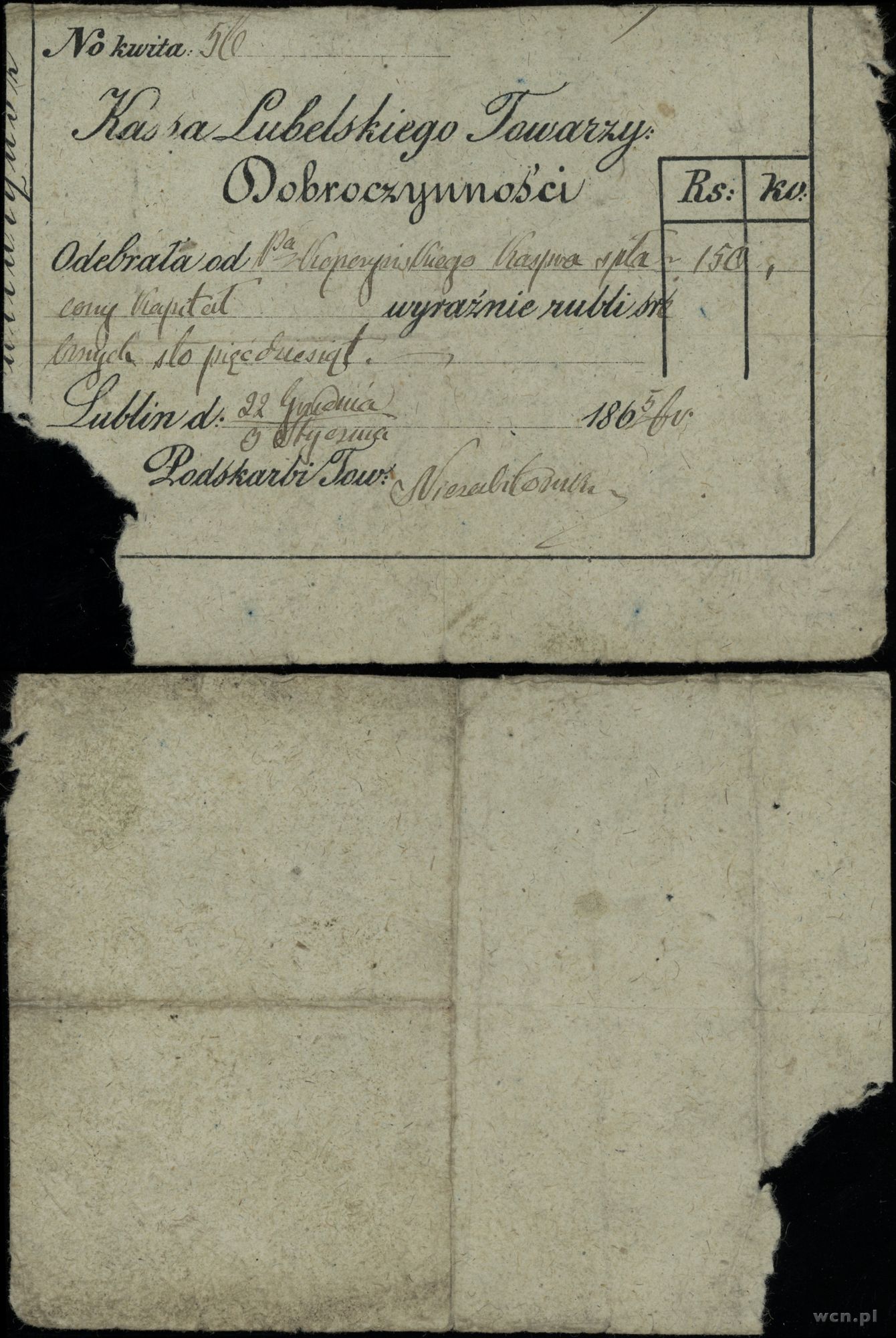 Polska, kwit na 150 rubli srebrem, 1865
