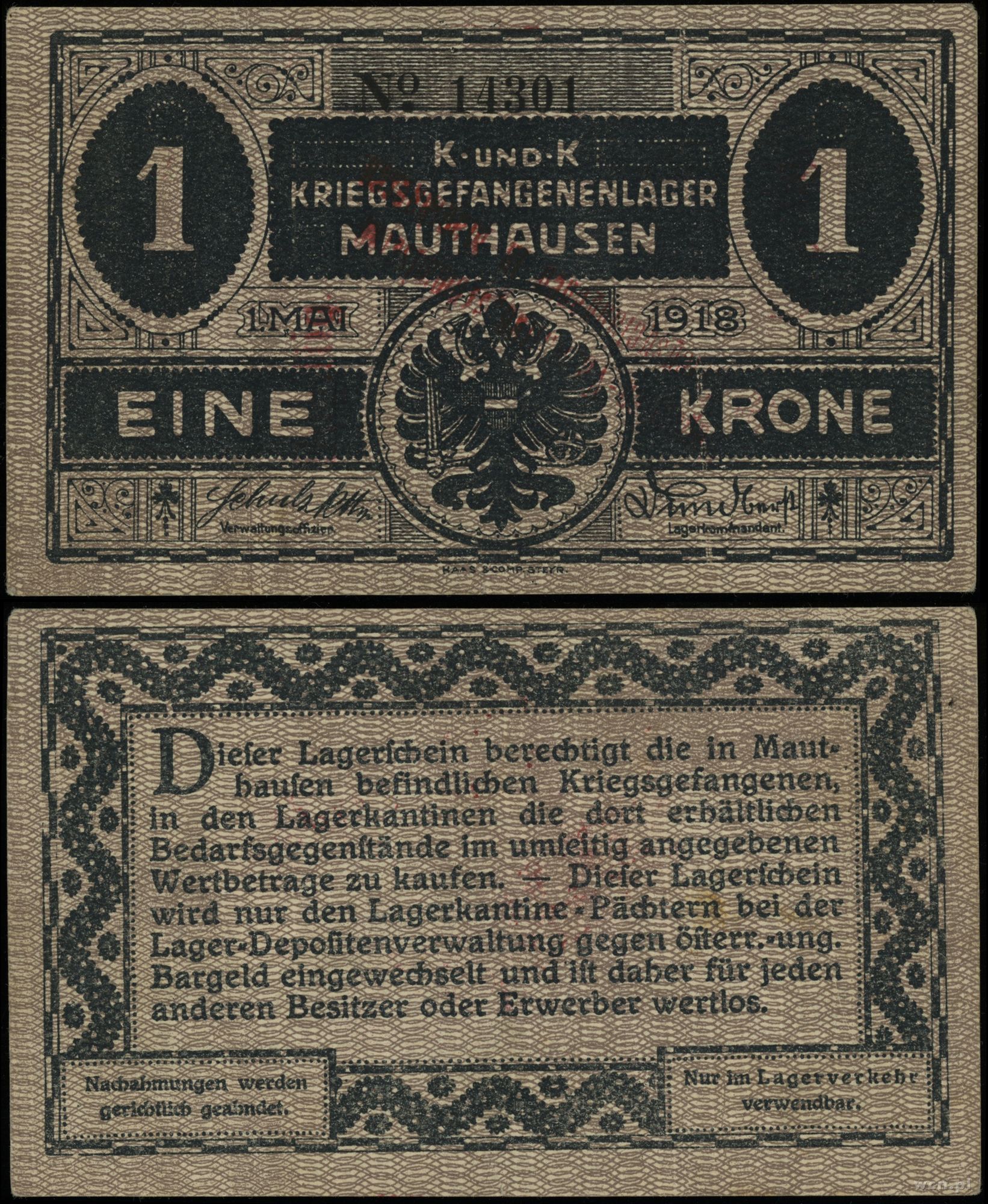 I Wojna Światowa, bon na 1 koronę, 1.05.1918