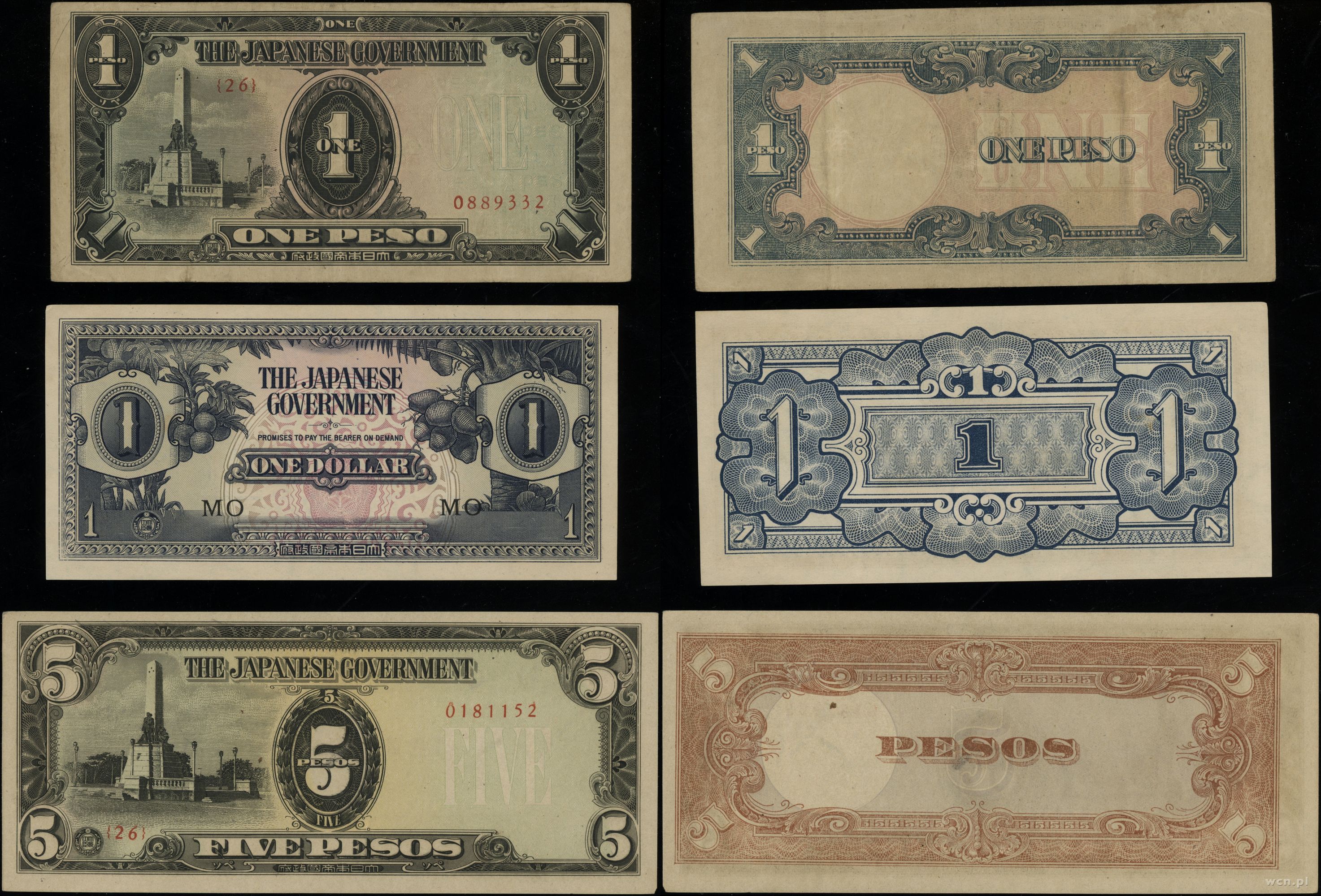 Filipiny, zestaw 6 banknotów, 1942–1944