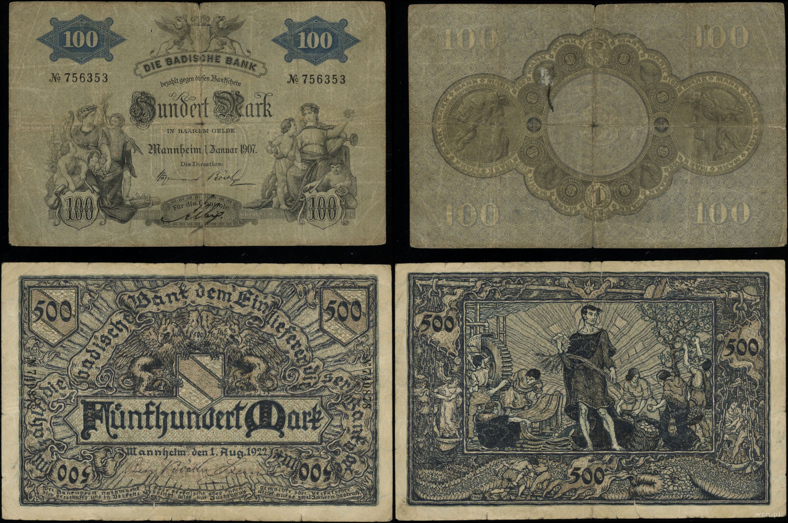 Niemcy, zestaw 6 banknotów, 1907–1923