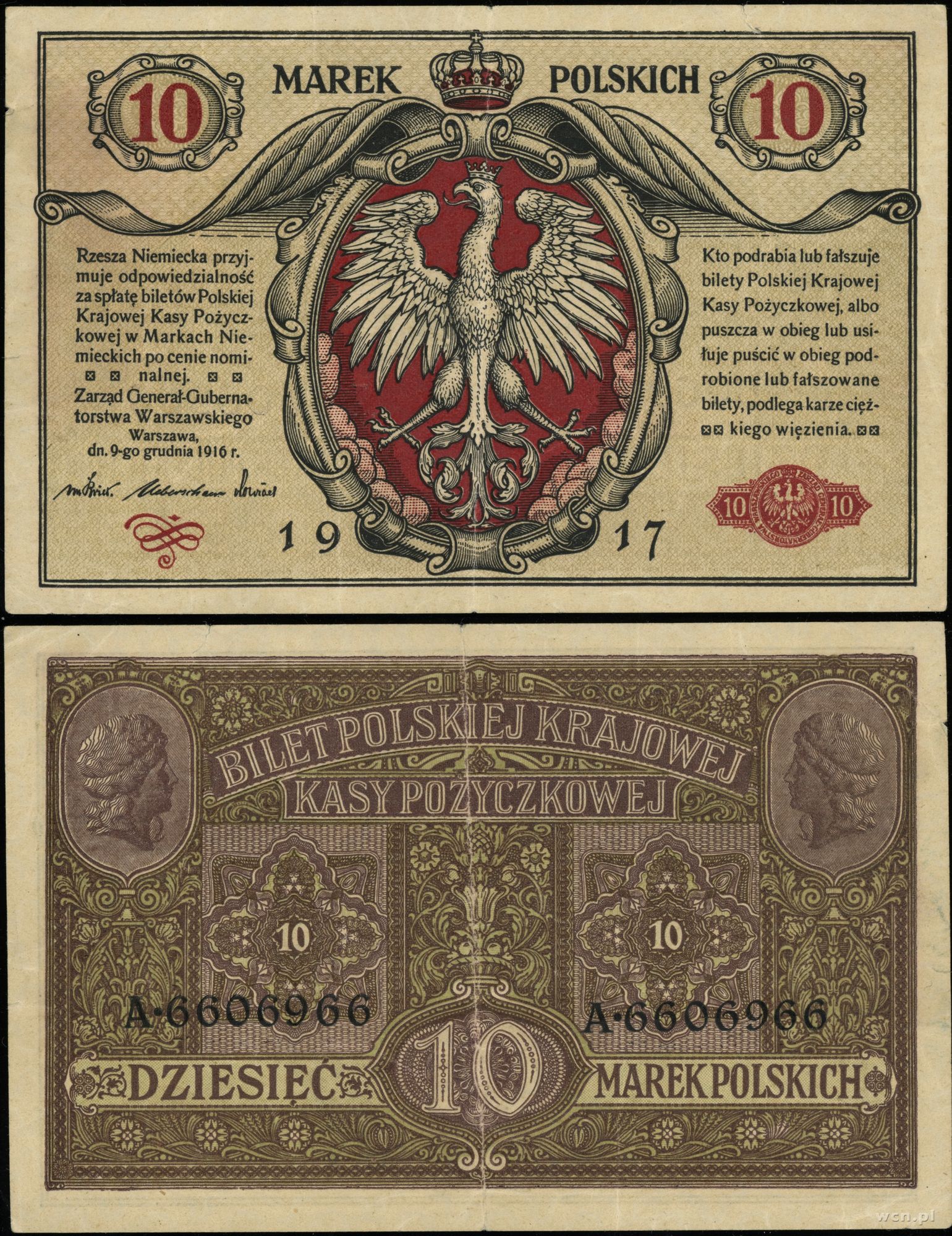 Polska, 10 marek polskich, 9.12.1916