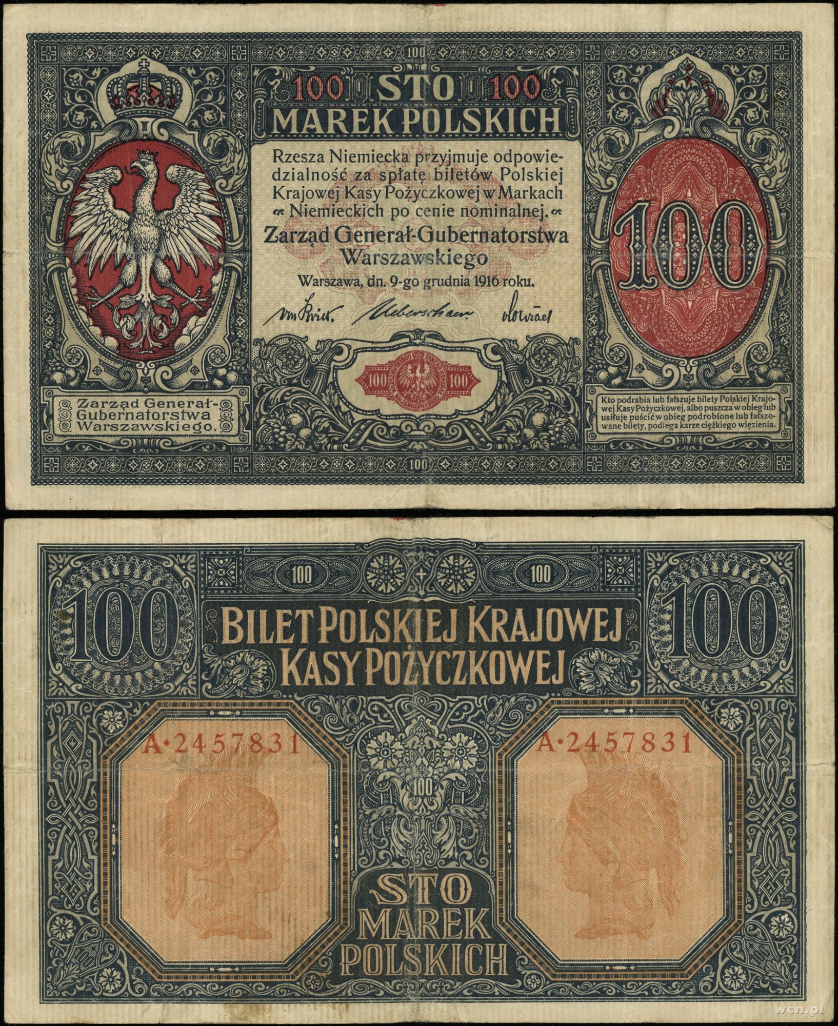 Polska, 100 marek polskich, 9.12.1916