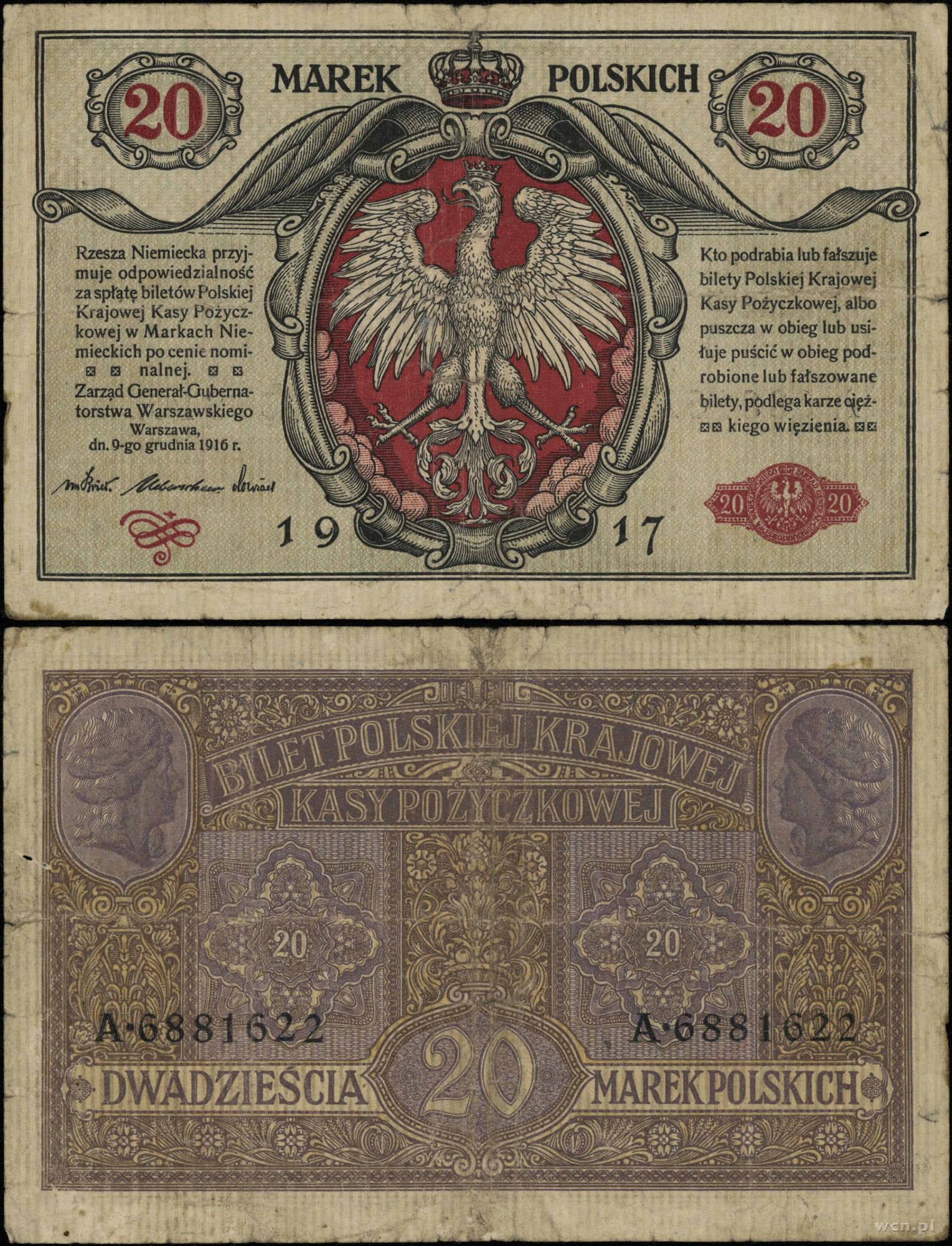 Polska, 20 marek polskich, 9.12.1916