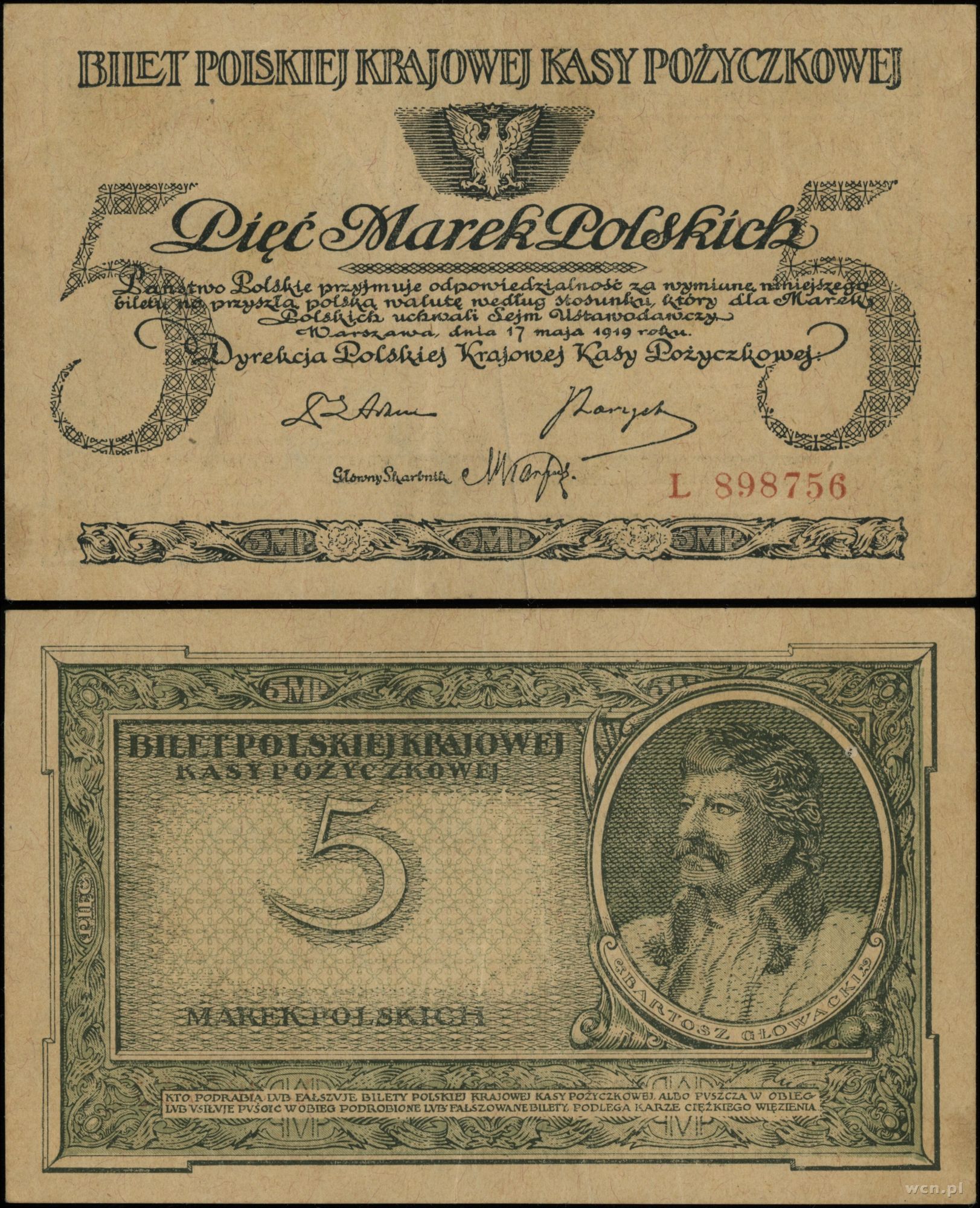 Polska, 5 marek polskich, 17.05.1919