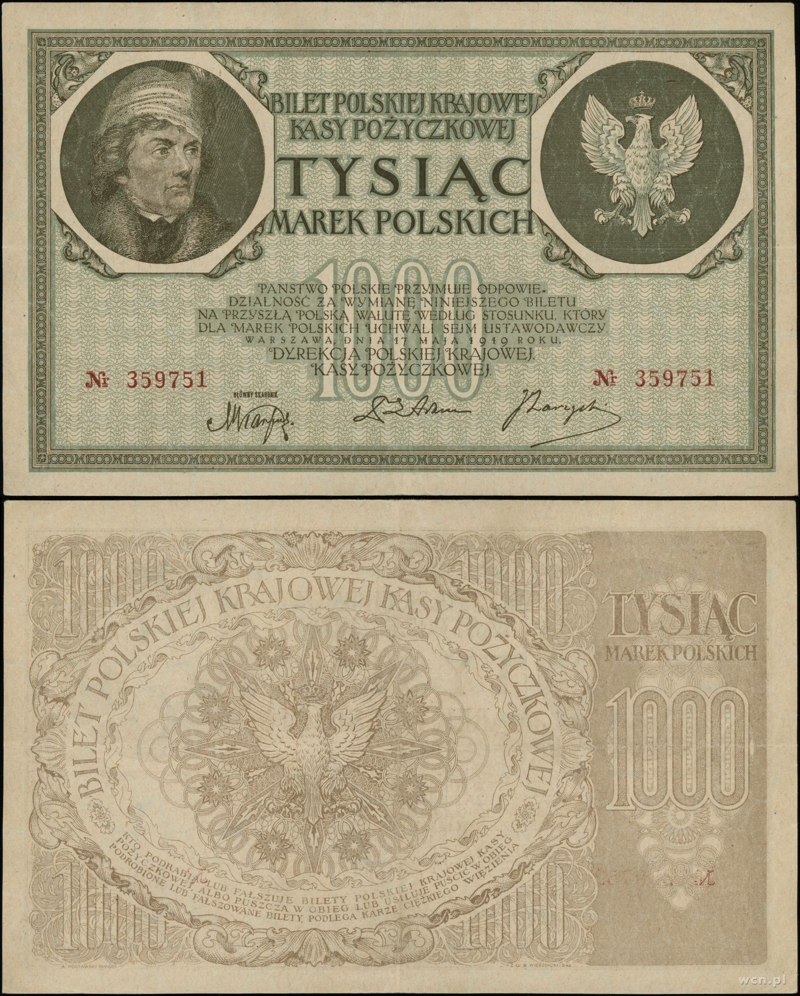 Polska, 1.000 marek polskich, 17.05.1919