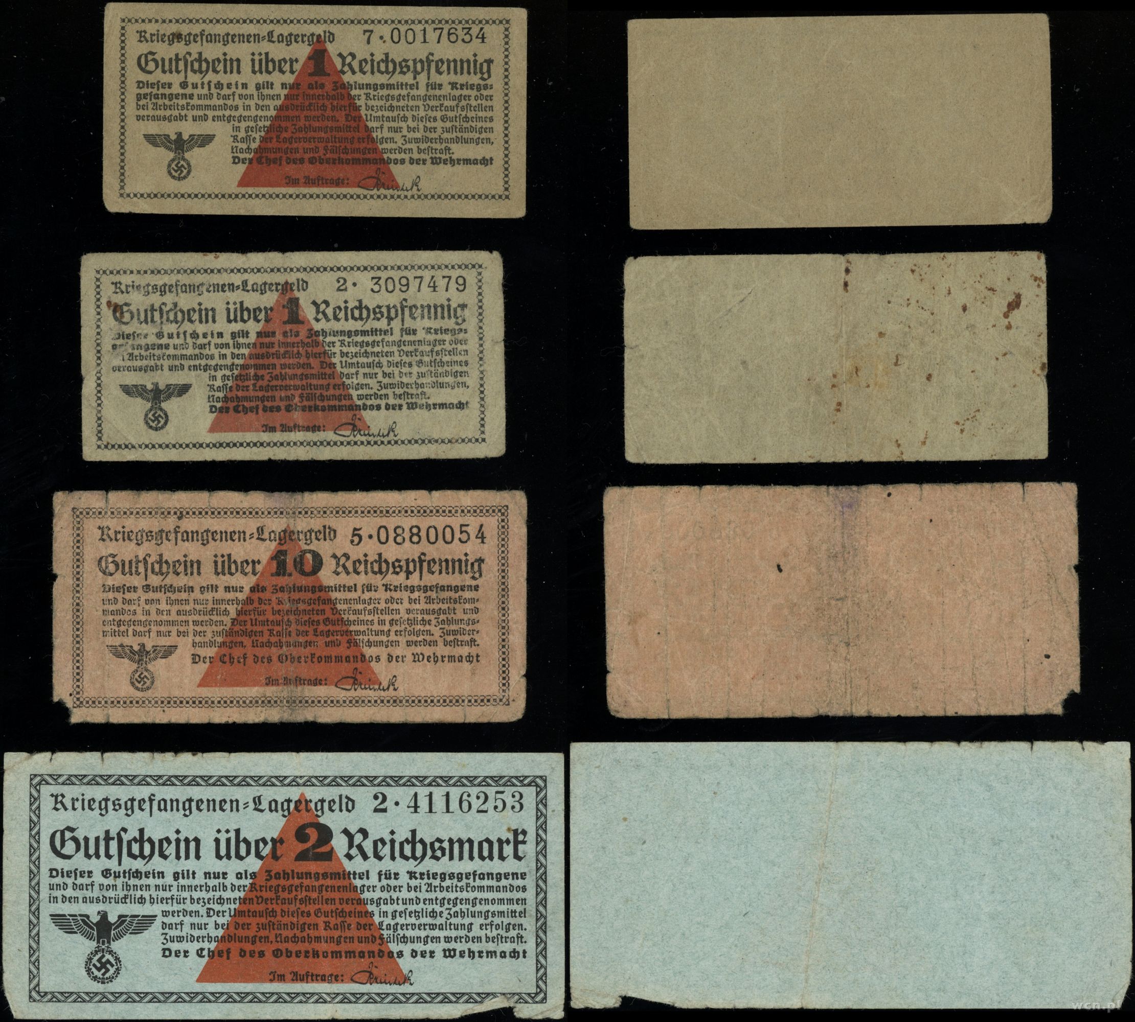 Kriegsgefangen Lagergeld (1939–1945), zestaw 4 banknotów, bez daty