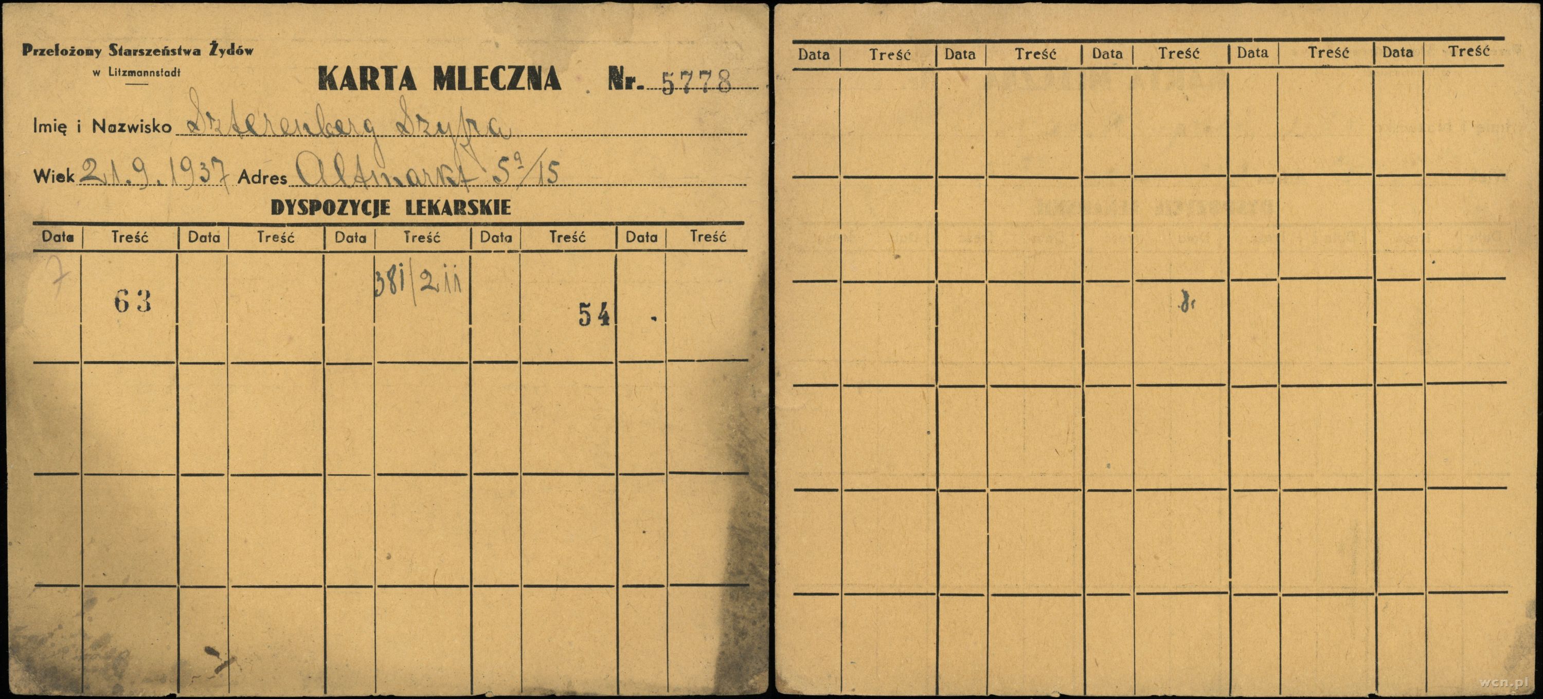 Polska, karta mleczna z getta łódzkiego
