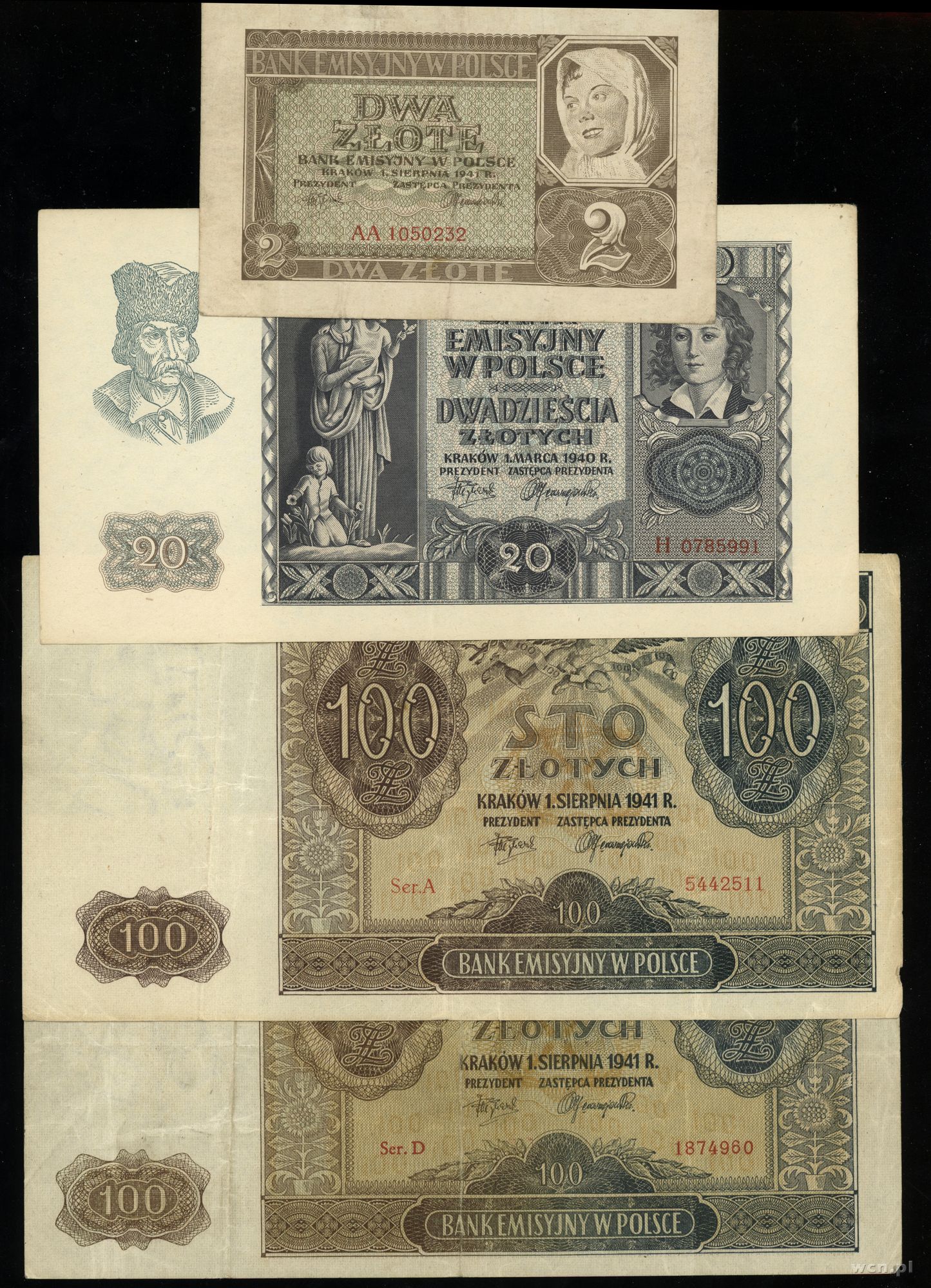 Polska, zestaw 4 banknotów, 1940–1941