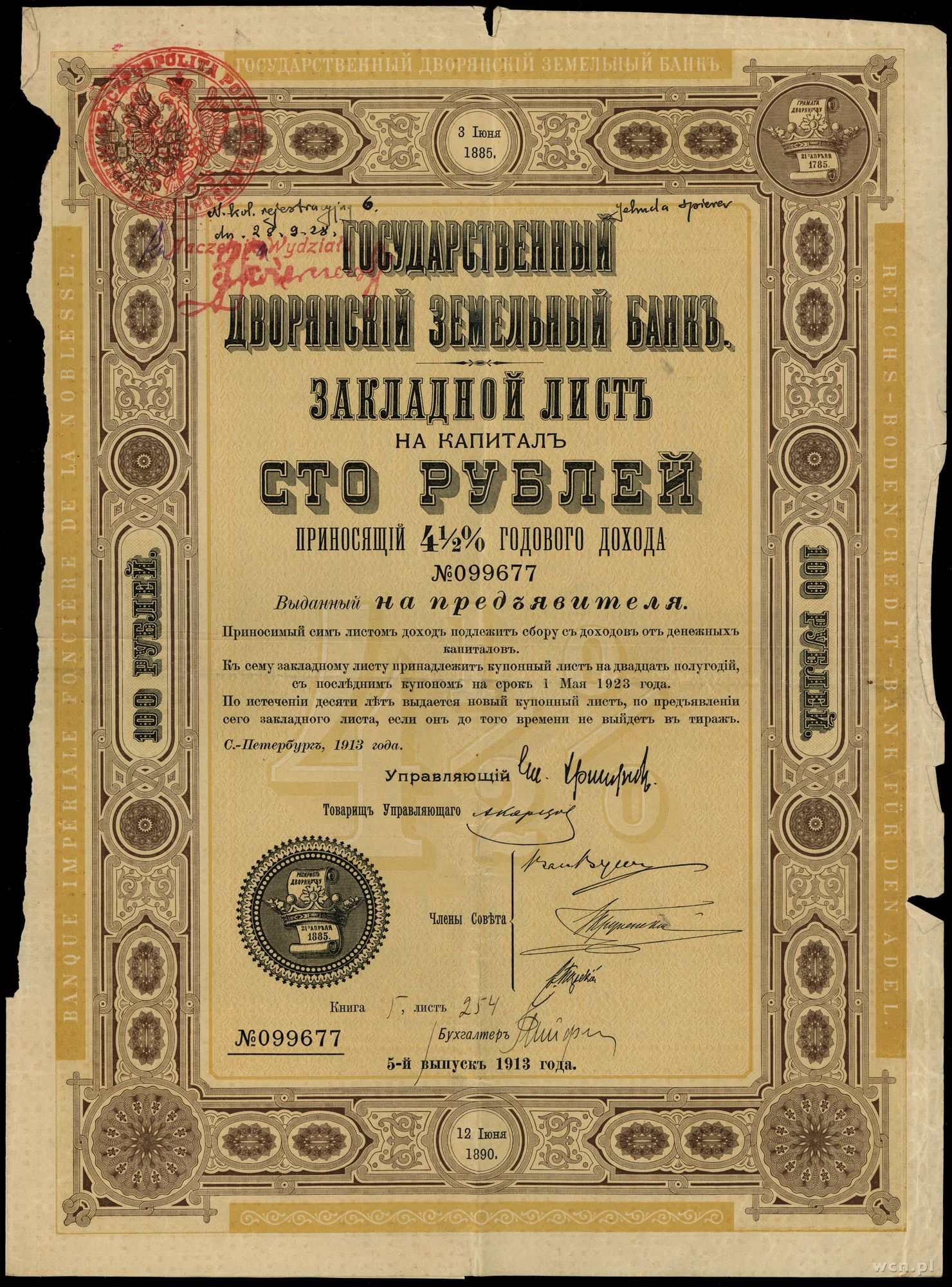 III emisja, numeracja 00949, z talonem i 6 kuponami | I/I- |