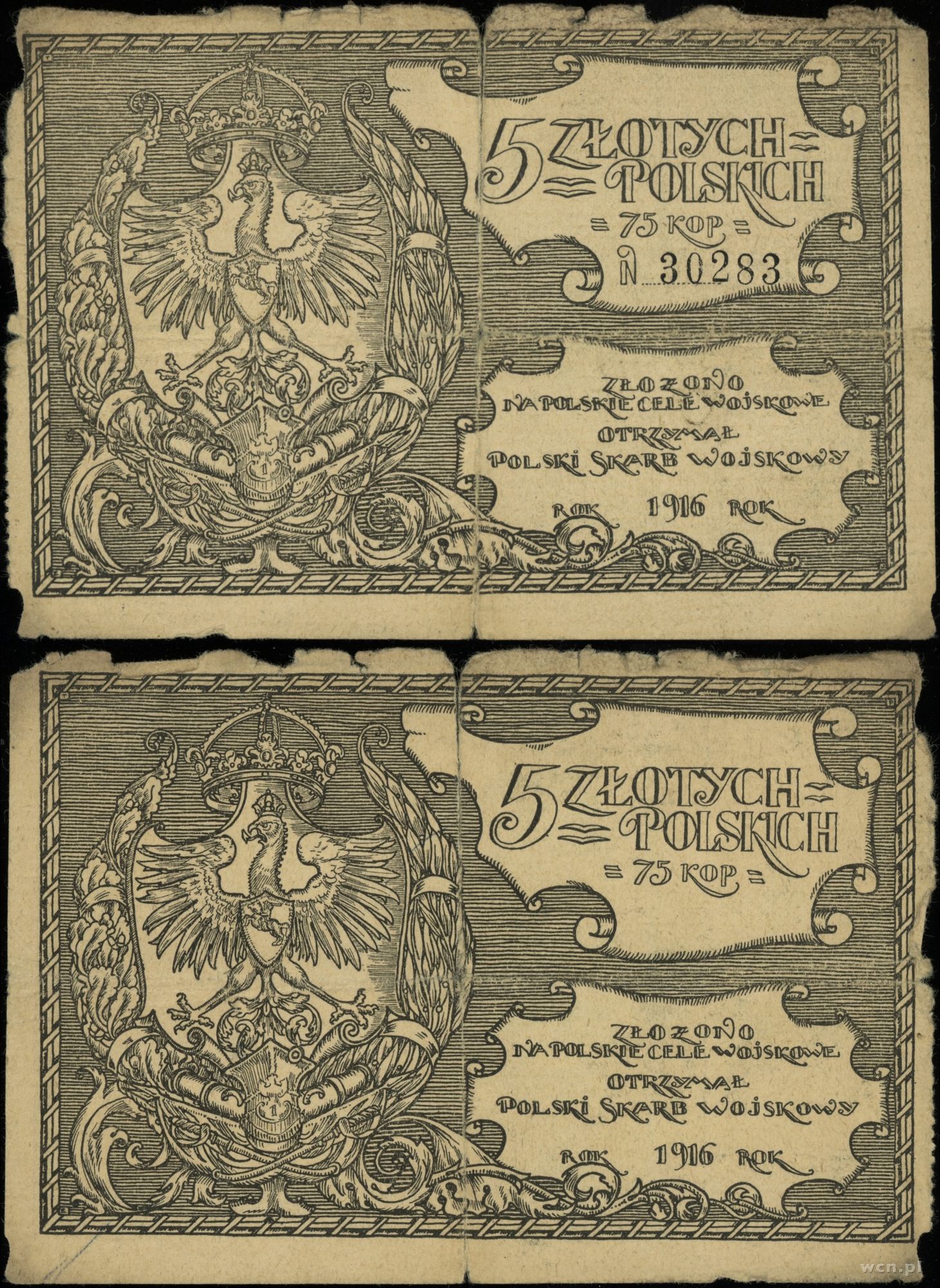 Polska, 5 złotych polskich = 75 kopiejek, 1916