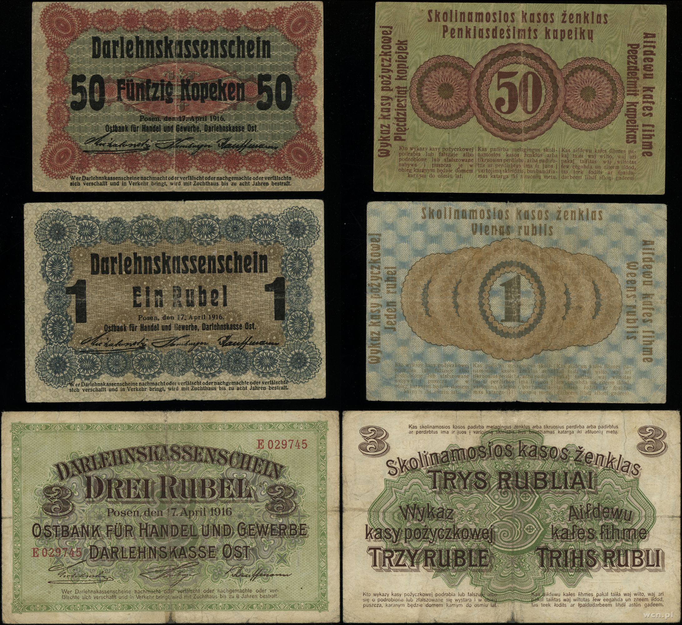 nominały: 50 kopiejek, 1 rubel i 3 ruble | III-/IV- |