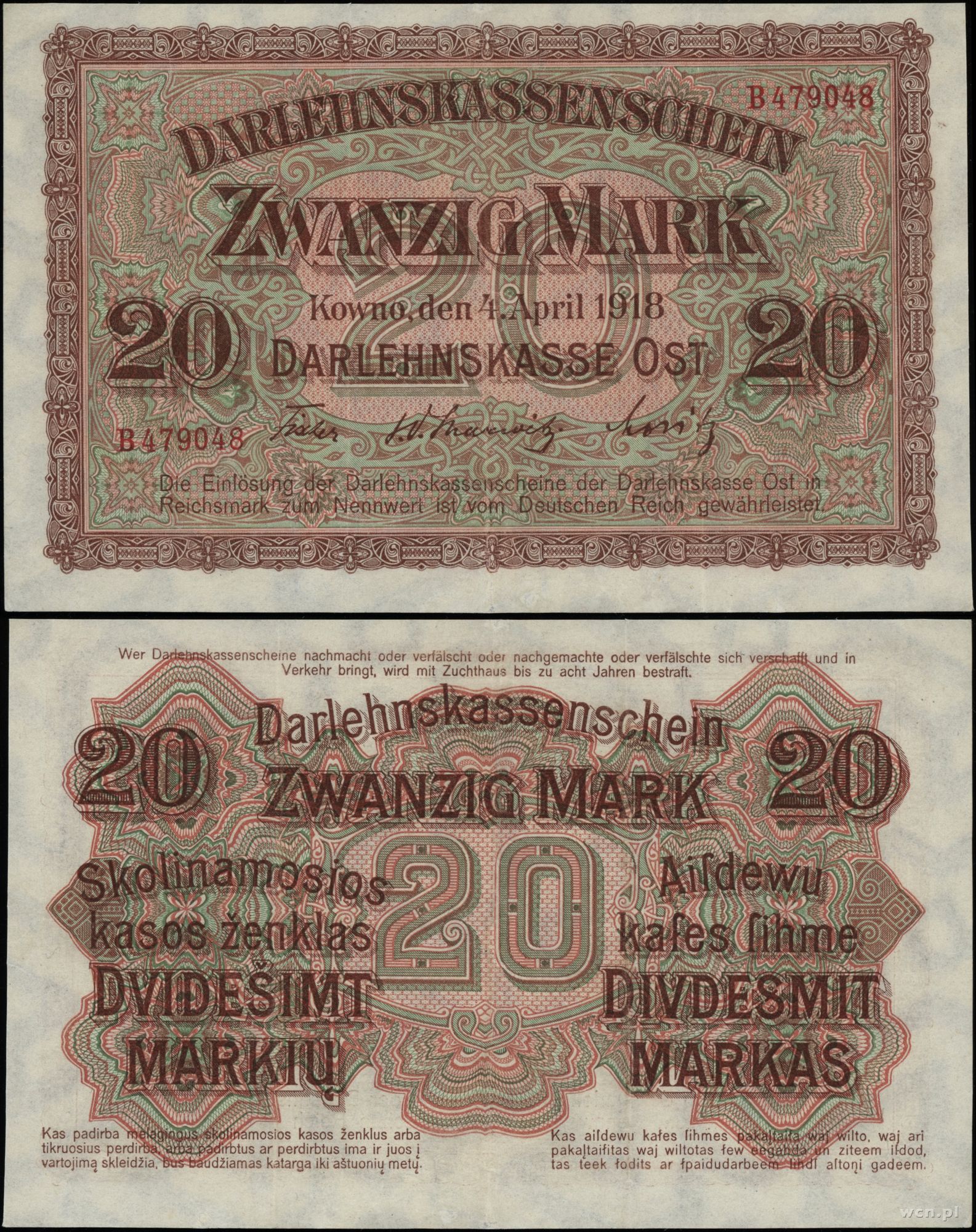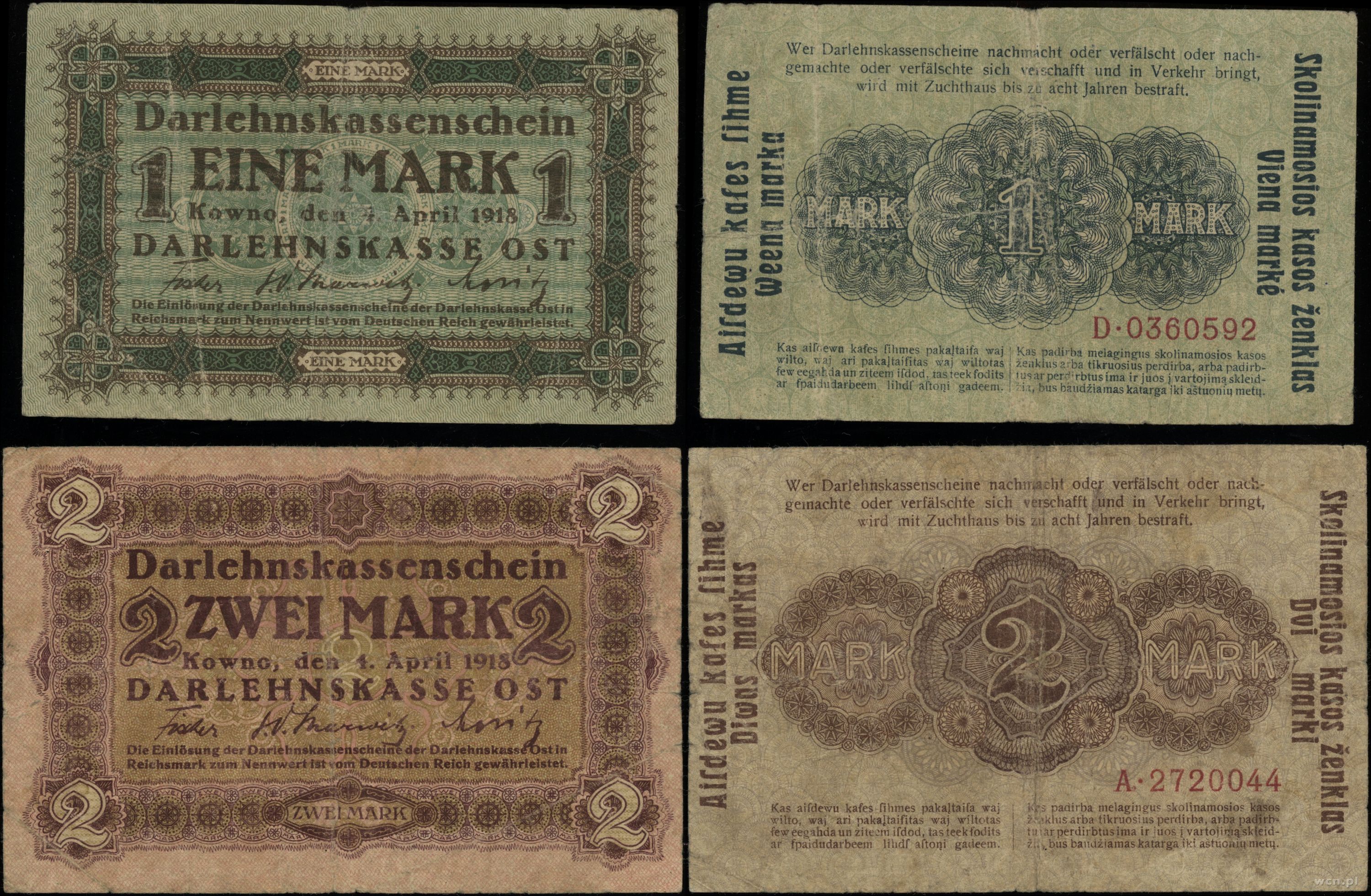 Polska, zestaw: 1 marka i 2 marki, 4.04.1918