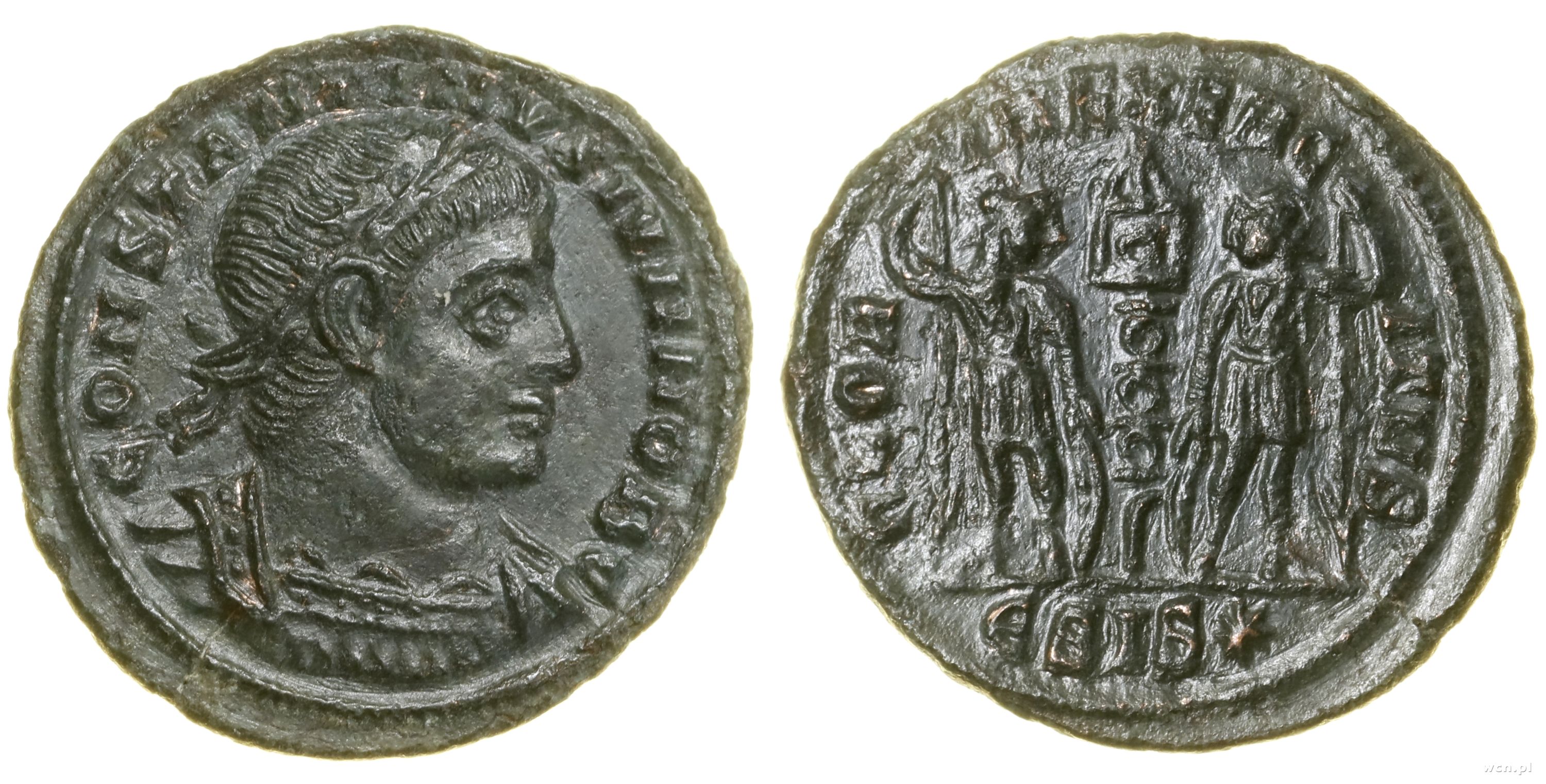 Aw: Popiersie w prawo, CONSTANTINVS IVN NOB C; Rw: Dwaj ż... | II |