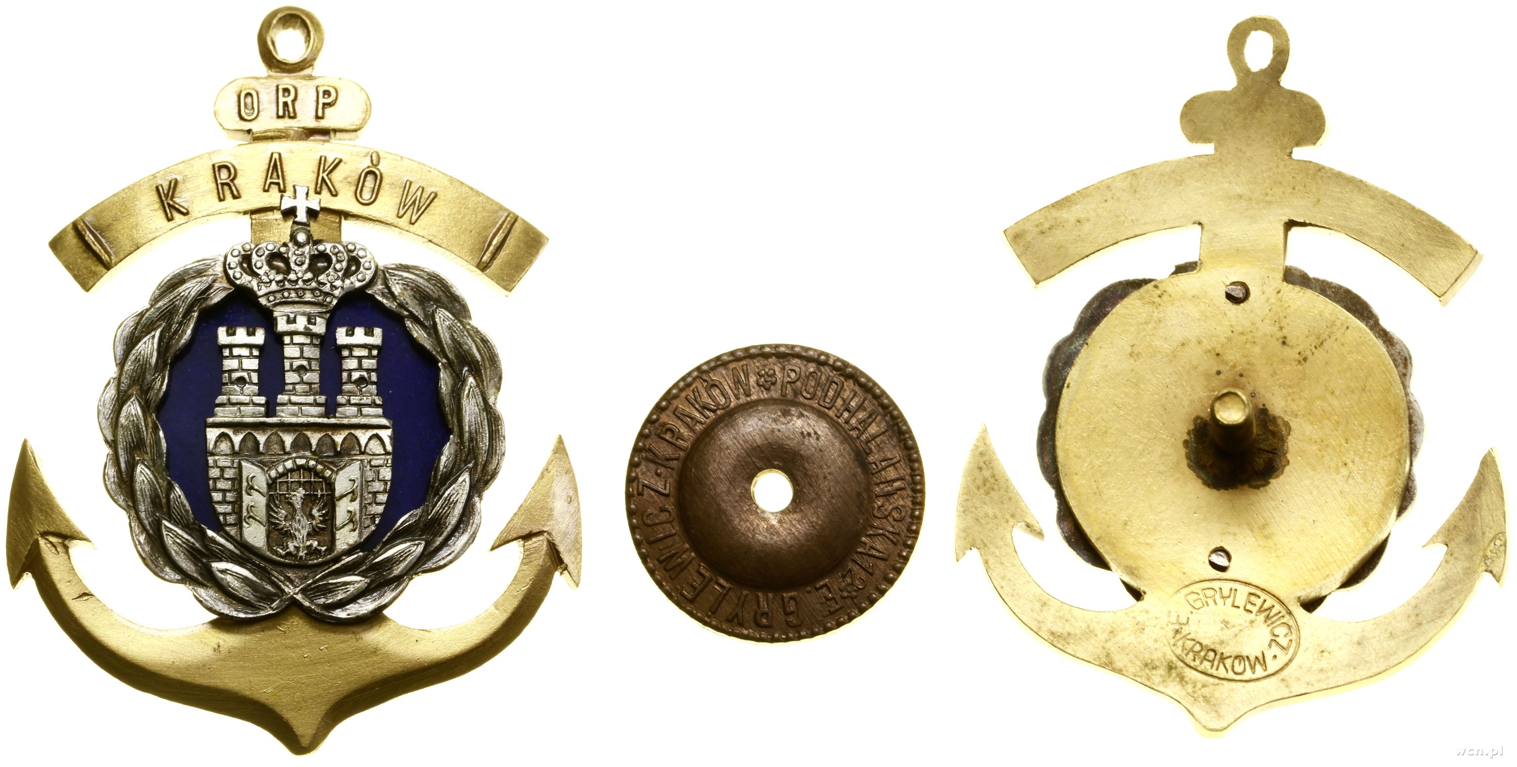 Herb Krakowa nałożóny na kotwicę, na belce ORP / KRAKÓW, ... | I |