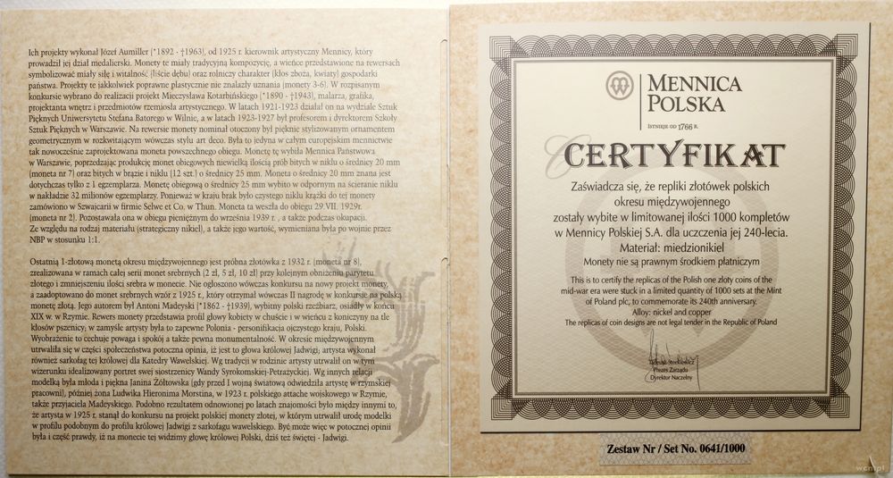 Polska, zestaw Mennicy Państwowej - oficjalne repliki złotówki okresu międzywojennego, 2006