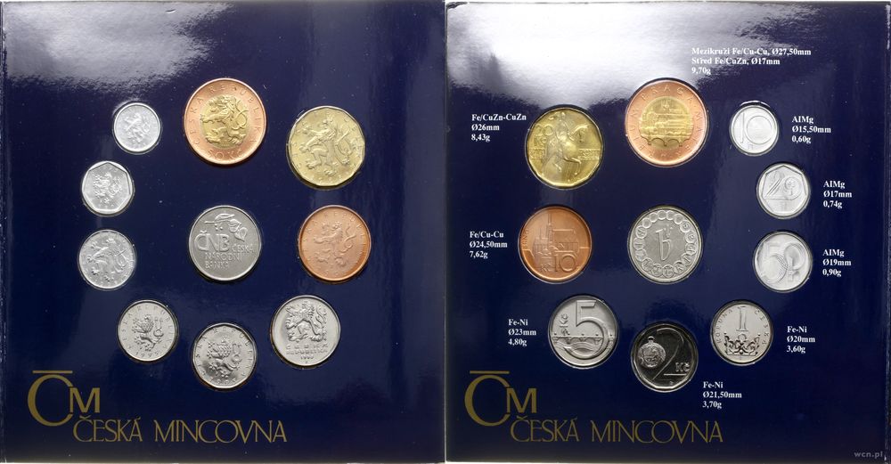| Opis: | Czechy - Republika od 1993, zestaw 9 monet + żeton, 1995, nominały od 10 halerzy do 50 koron |