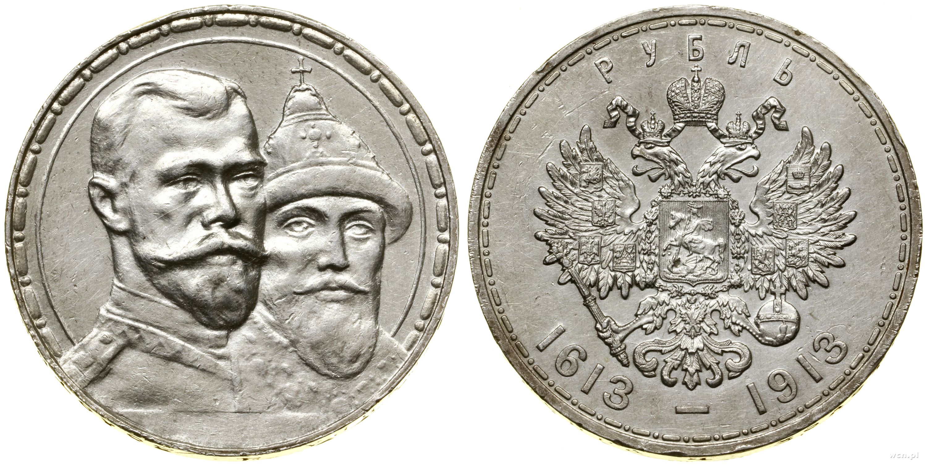 | Opis: | Rosja - Mikołaj II (1894–1917), rubel, 1913 (B•C), Petersburg, wybity na 300-lecie panowania dynastii Romanowych |