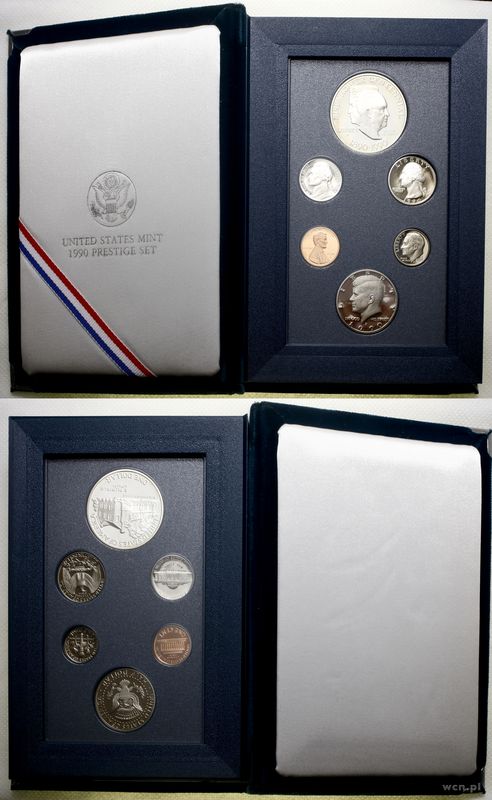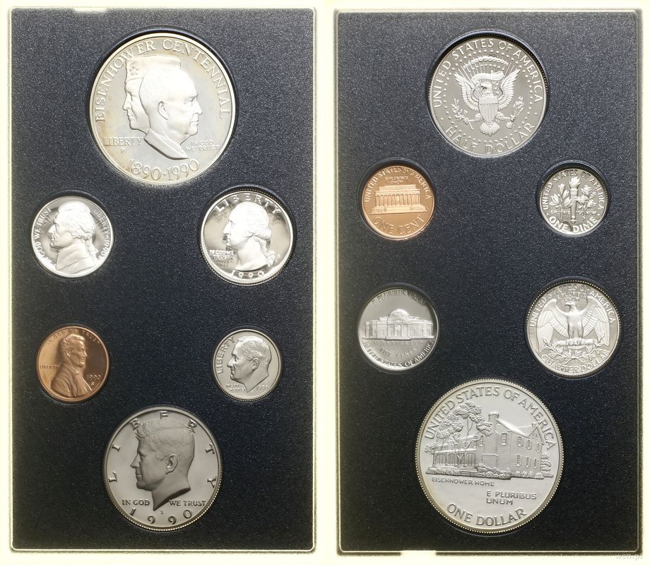 | Opis: | Stany Zjednoczone Ameryki (USA), zestaw rocznikowy, 1990, San Francisco, w skład zestawu wchodzi 1 dolar (srebro), 1/2 dolara, 1/4 dolara, 1 dime, 5 centów i 1 cent |