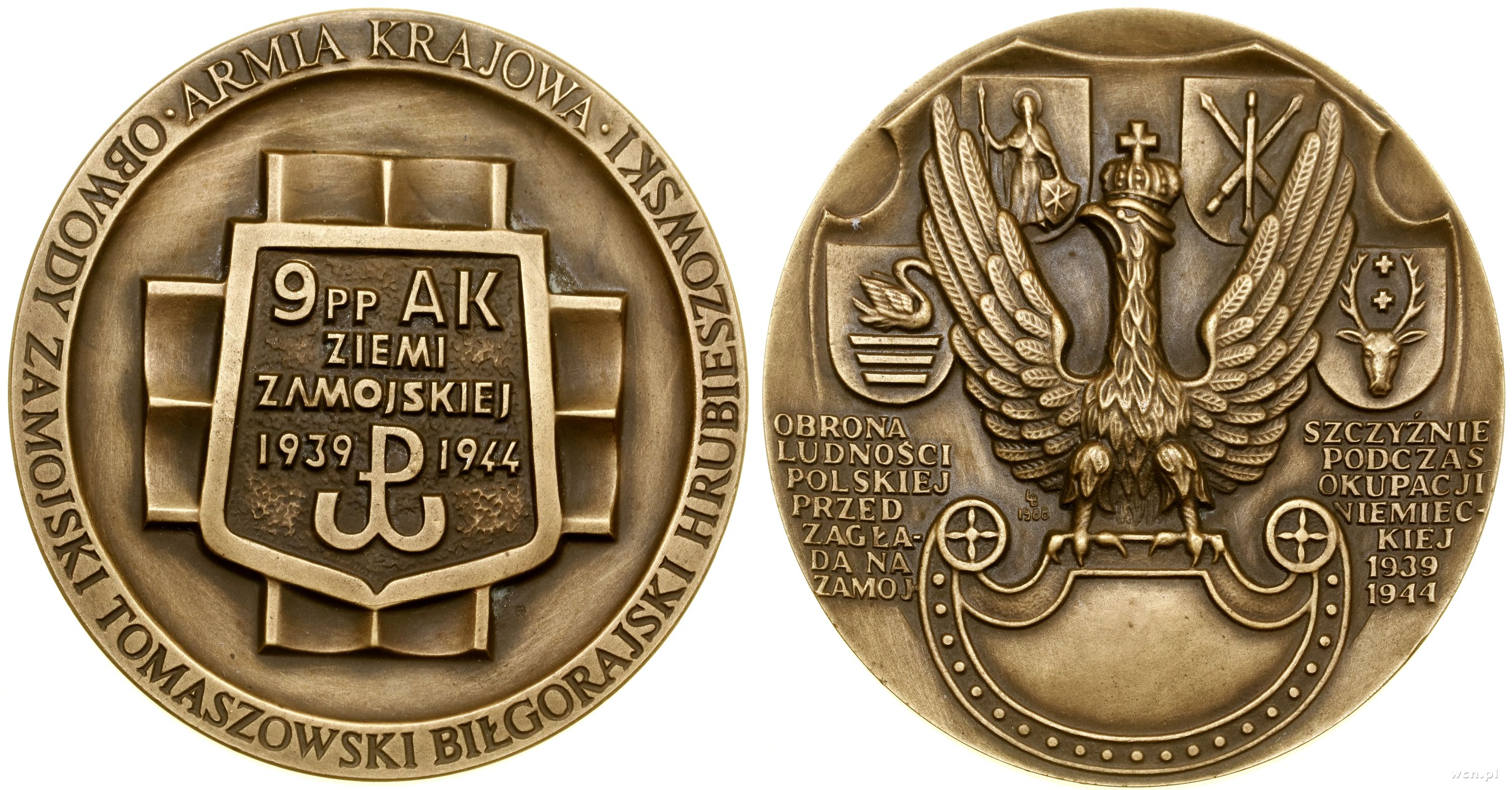 Aw: Orzeł wojskowy, w tle herby Zamościa, Tomaszowa, Biłg... | I |