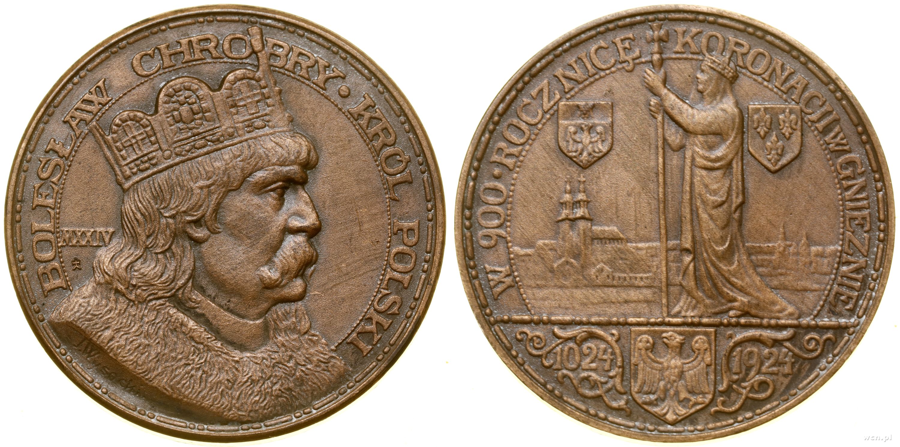 Polska, medal wybity na 900. Rocznicę Koronacji Bolesława Chrobrego, 1924