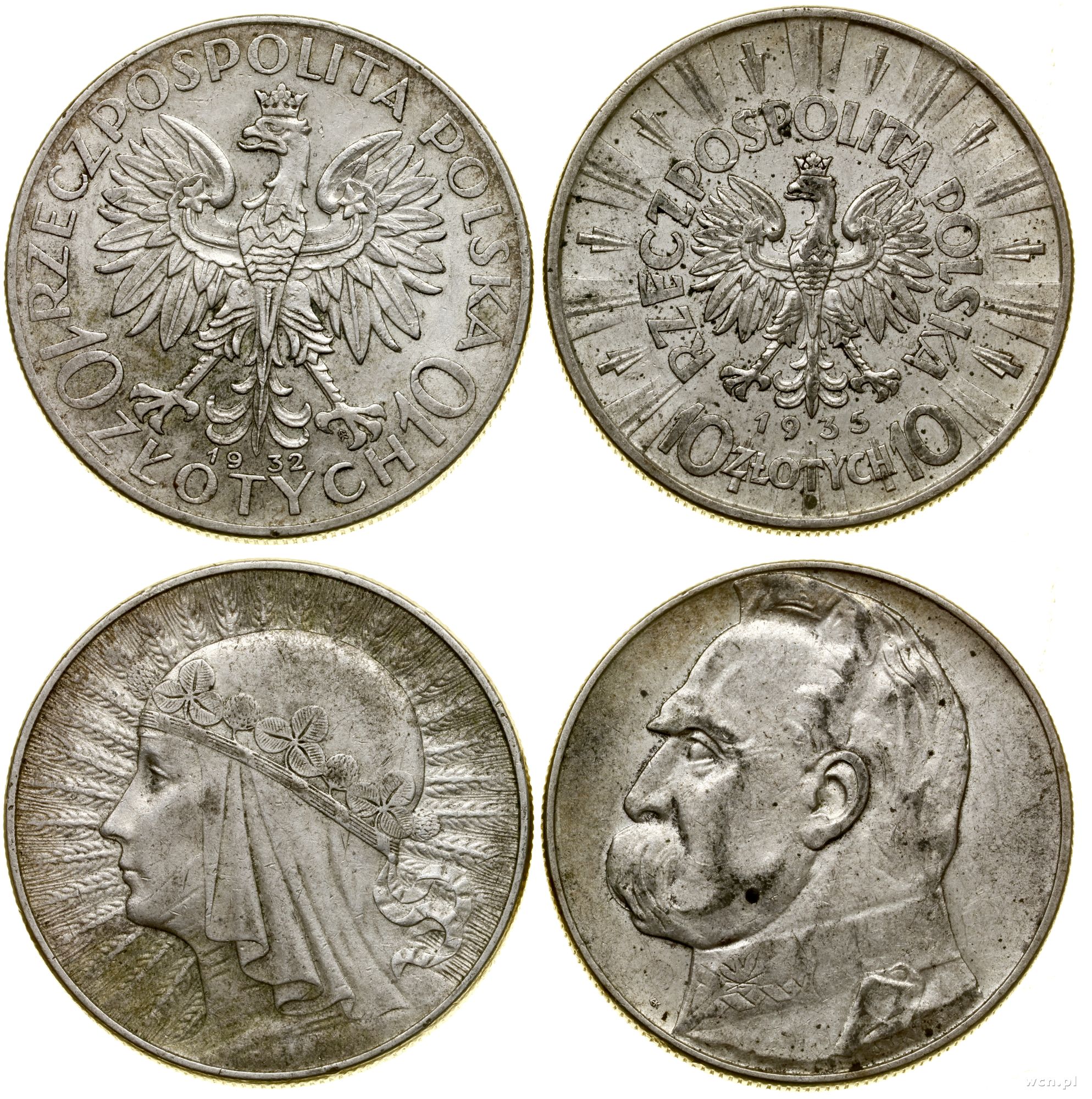 10 złotych 1932, głowa kobiety w czepcu – ze znakiem menn... | III+ |