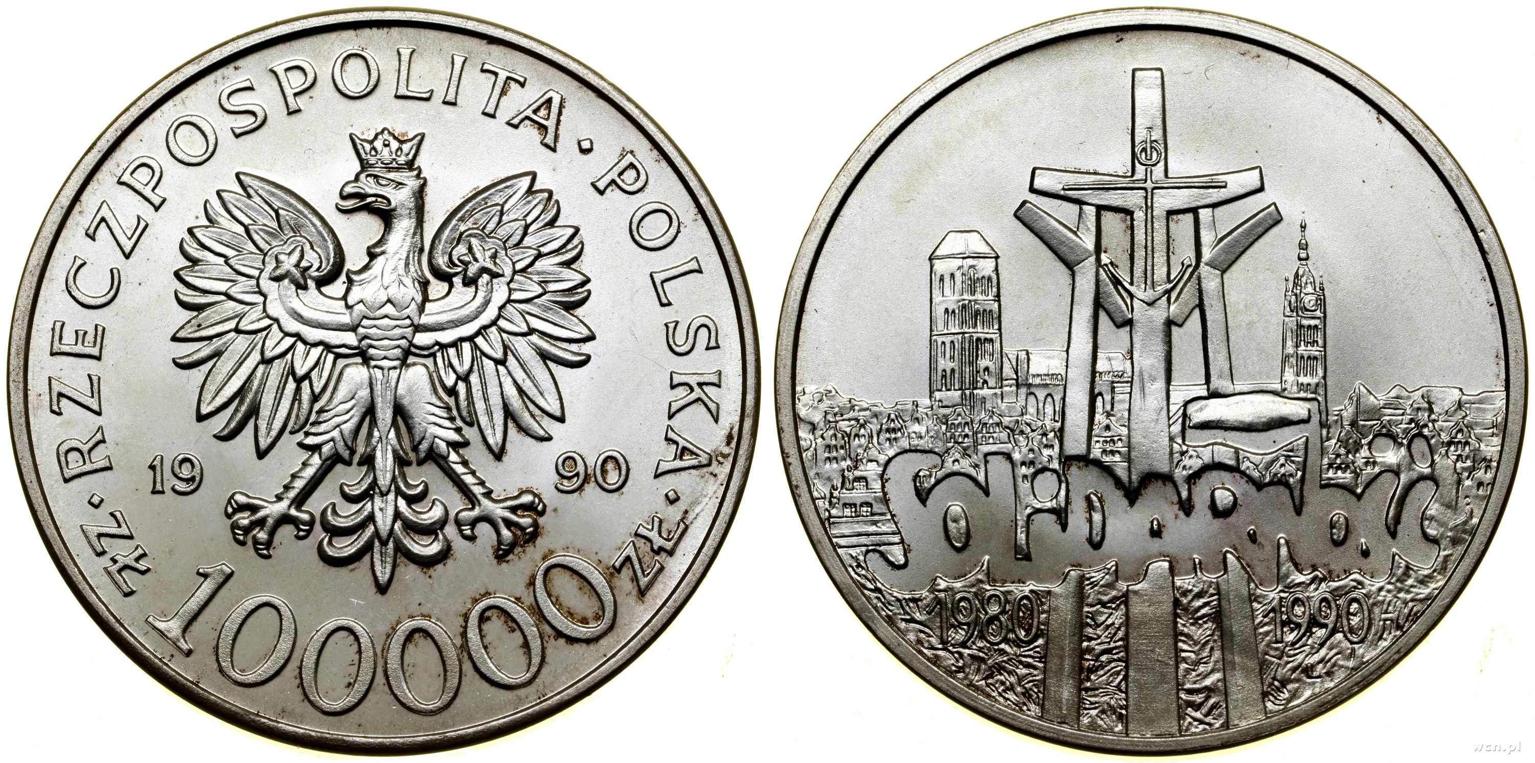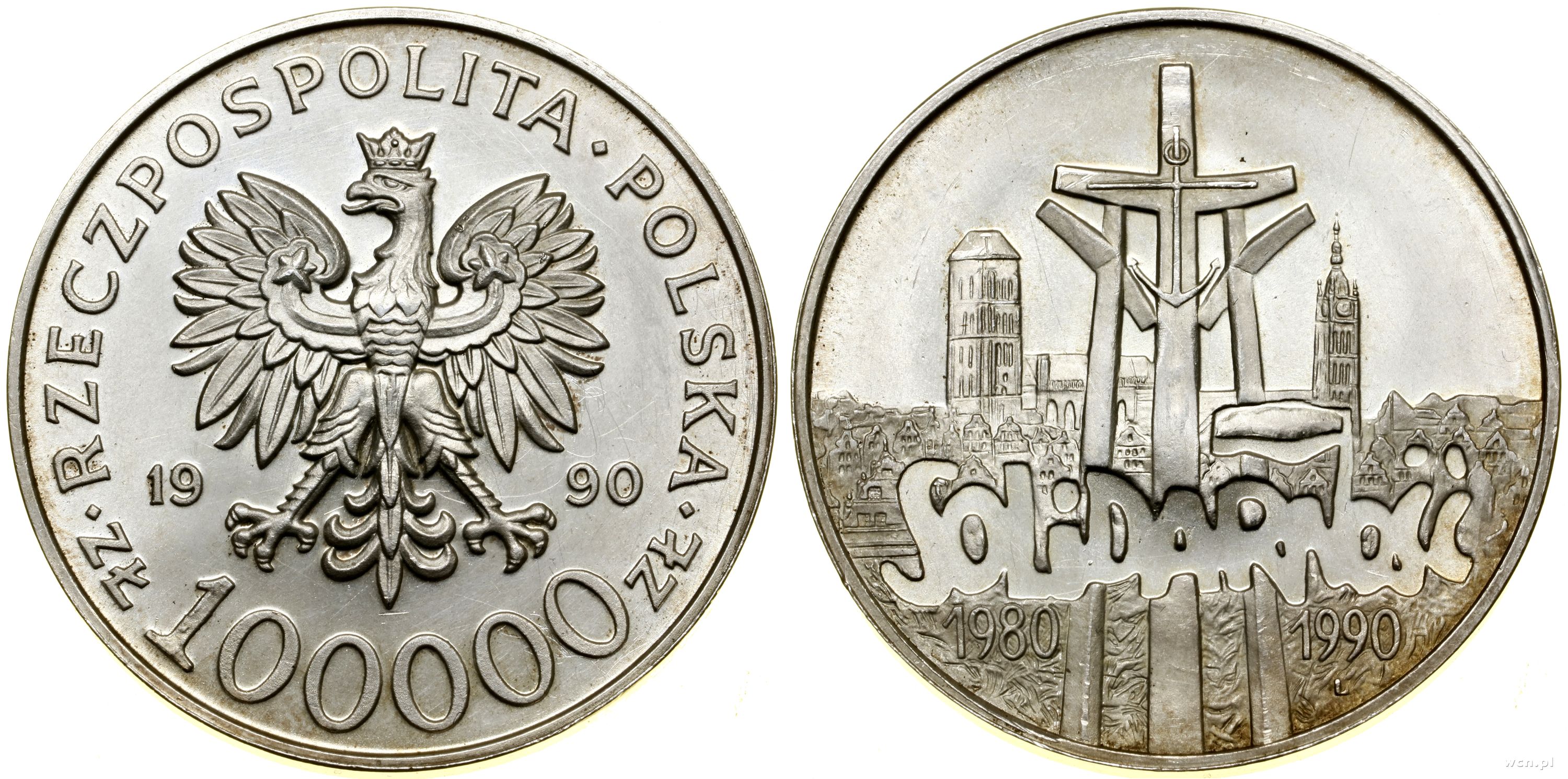 Solidarność 1980–1990, (typ B), na awersie ZŁ blisko nomi... | I |