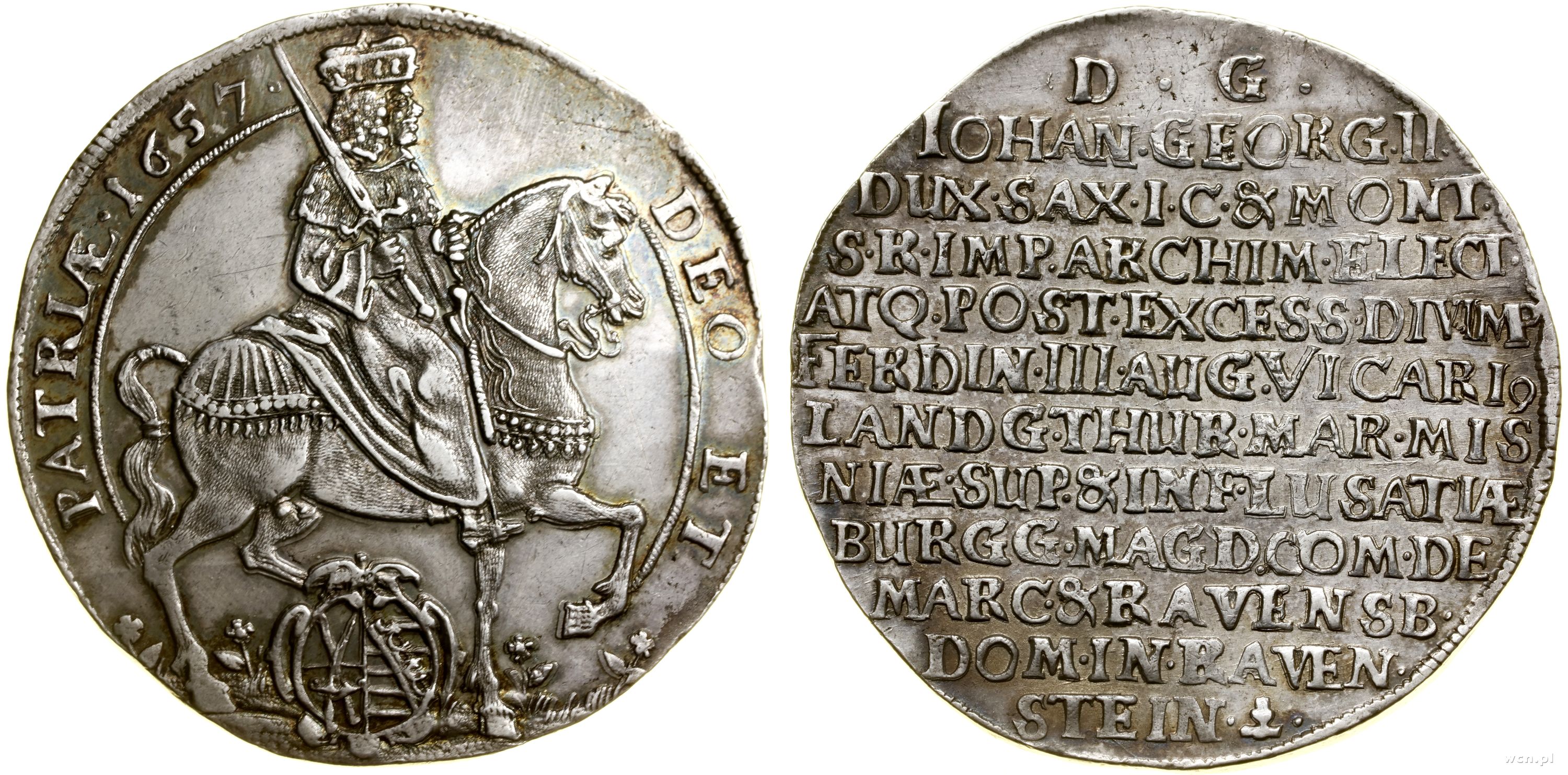 Aw: Władca na koniu, w prawo, poniżej tarcza herbowa, DEO... | II+/II |