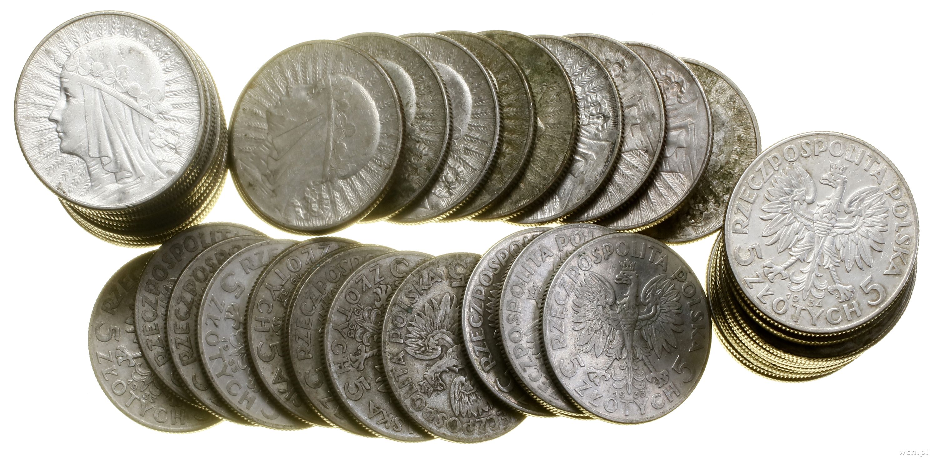 Polska, zestaw 50 x 5 złotych, różne roczniki