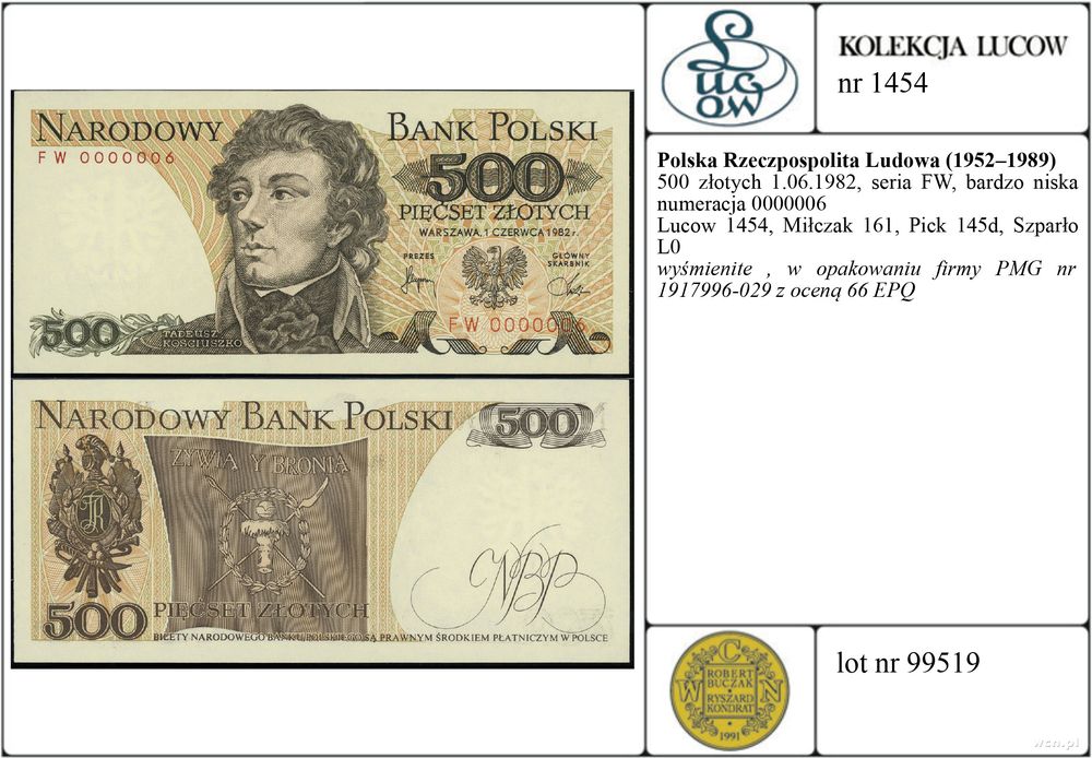 | Opis: | Polska - Polska Rzeczpospolita Ludowa (1952–1989), 500 złotych, 1.06.1982, seria FW, bardzo niska numeracja 0000006 |