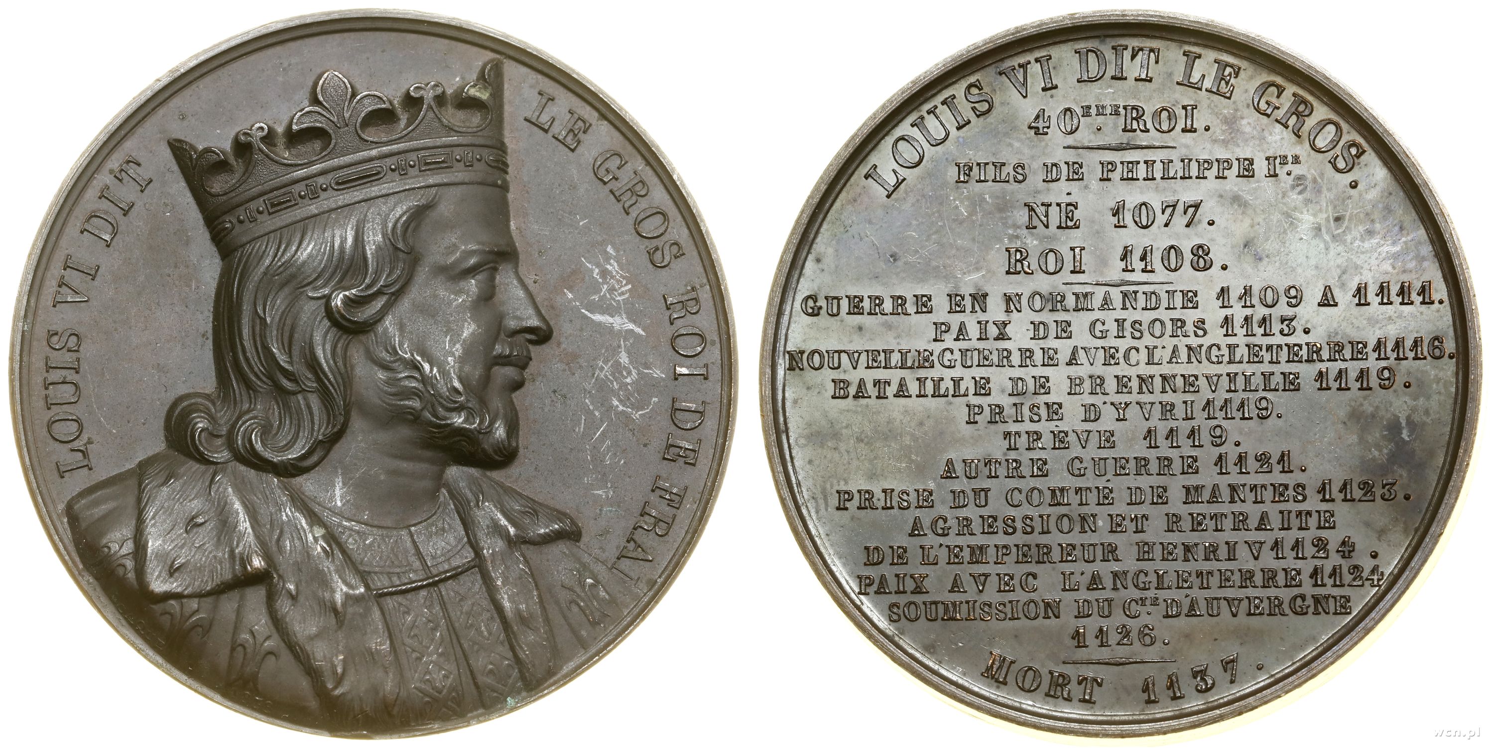 Francja, medal z serii władcy Francji – Ludwki VI Gruby, 1838