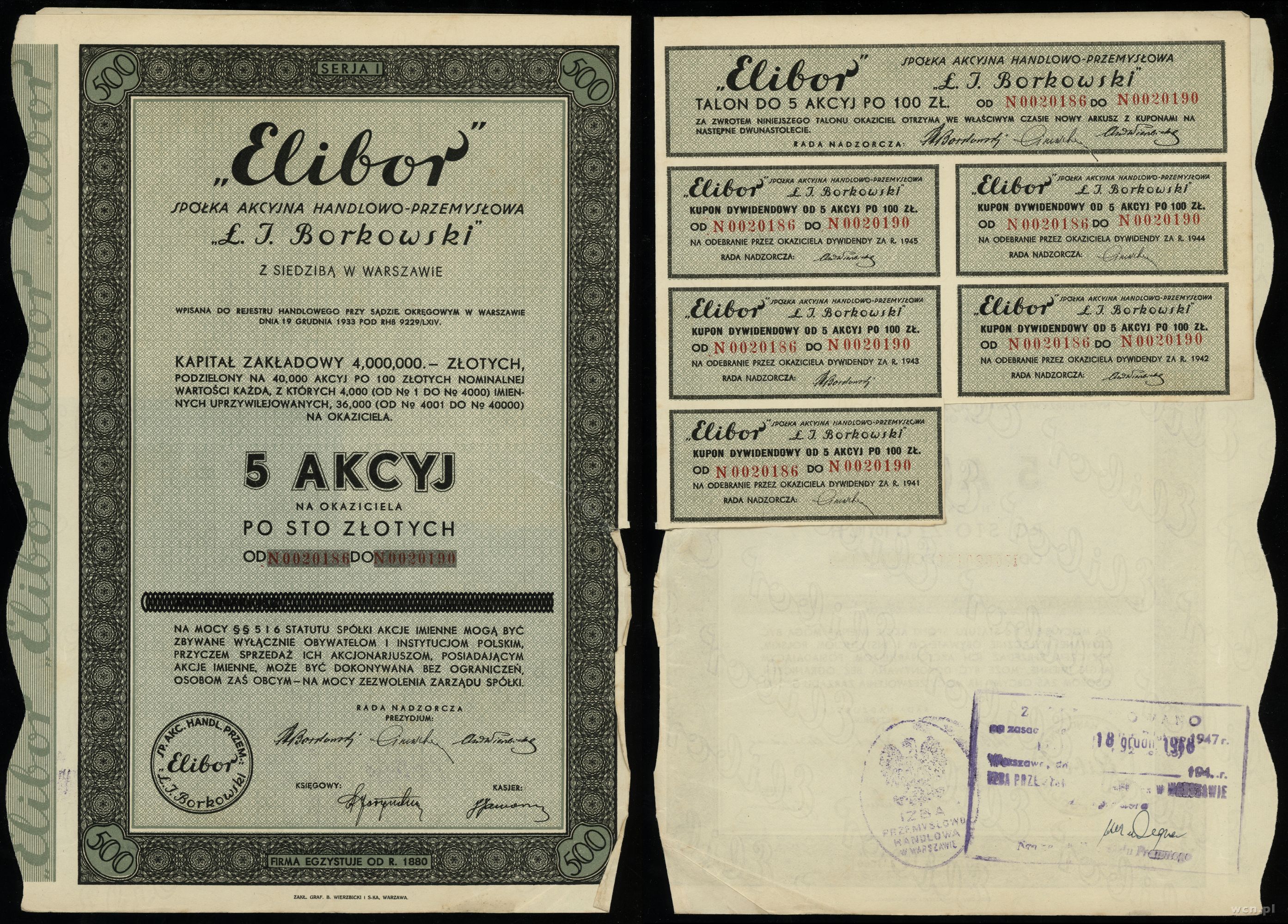 II emisja, numeracja 00548, z talonem i 5 kuponami | I- |