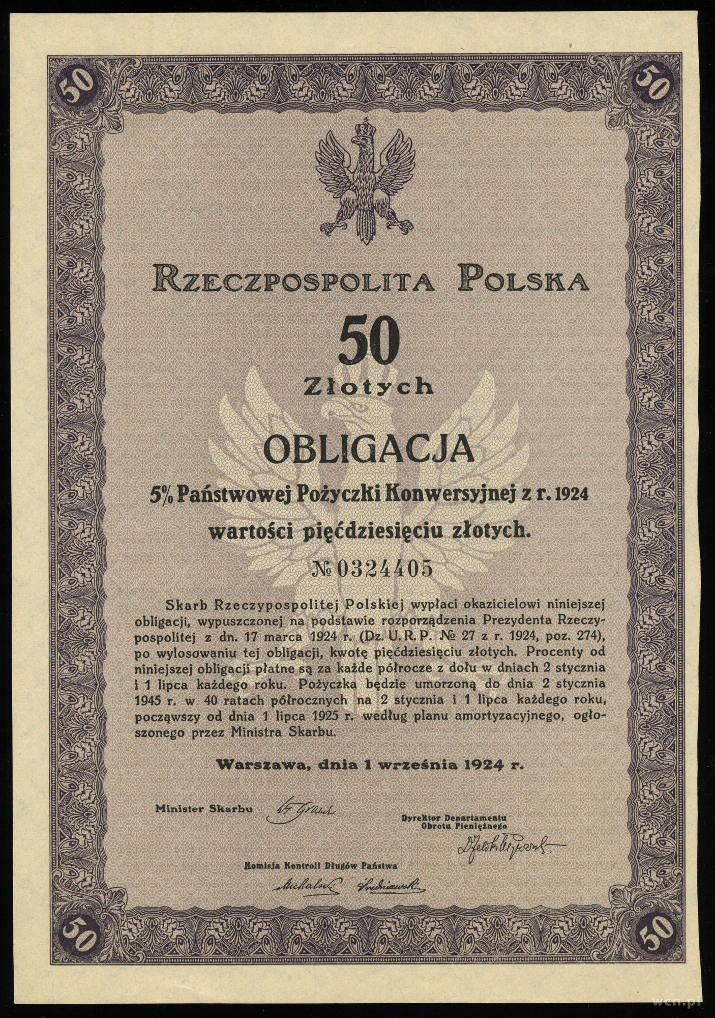 Rzeczpospolita Polska (1918–1939), zestaw 3 obligacji, 1.09.1924