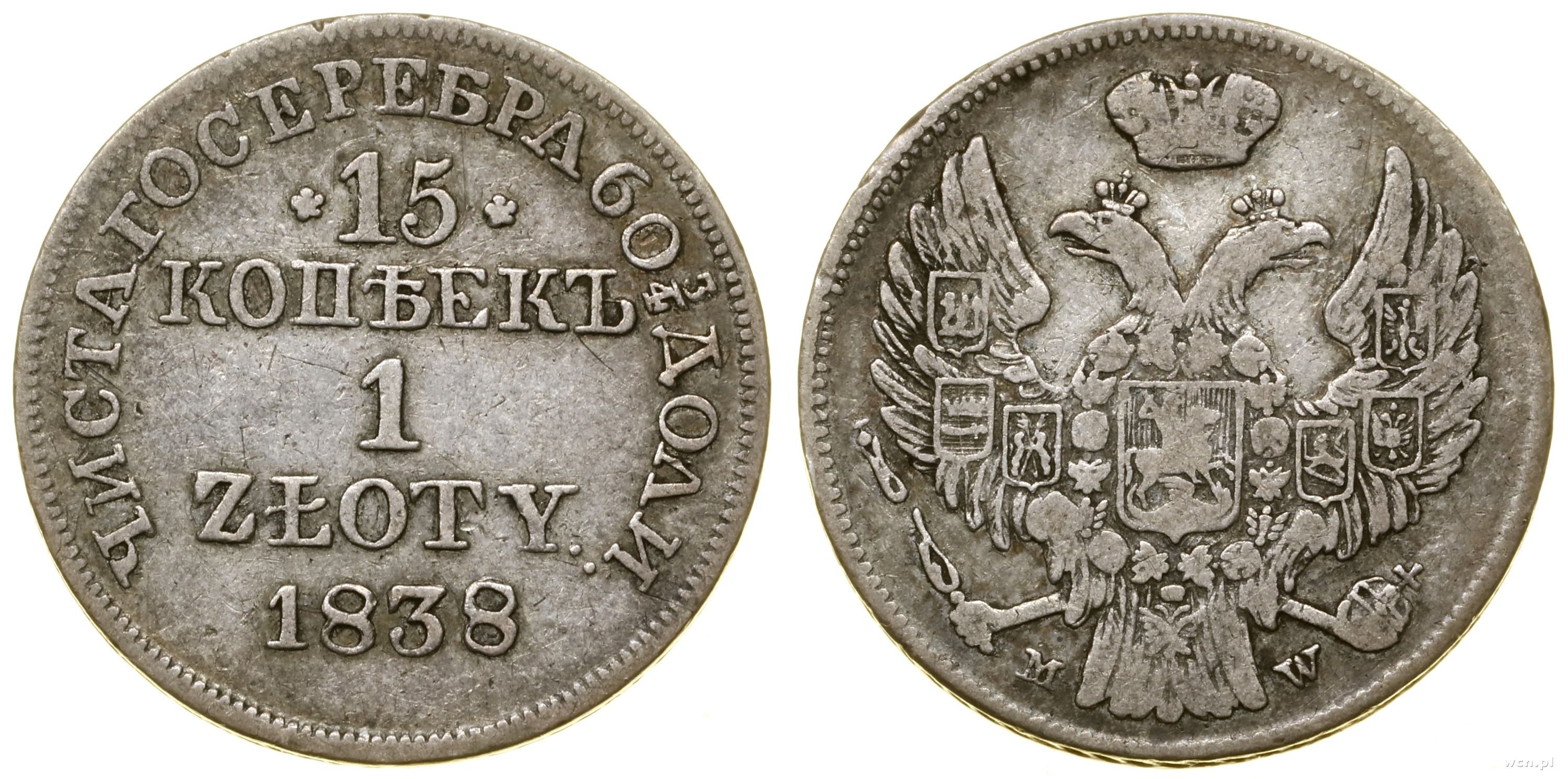 Polska, 15 kopiejek = 1 złoty, 1838 MW