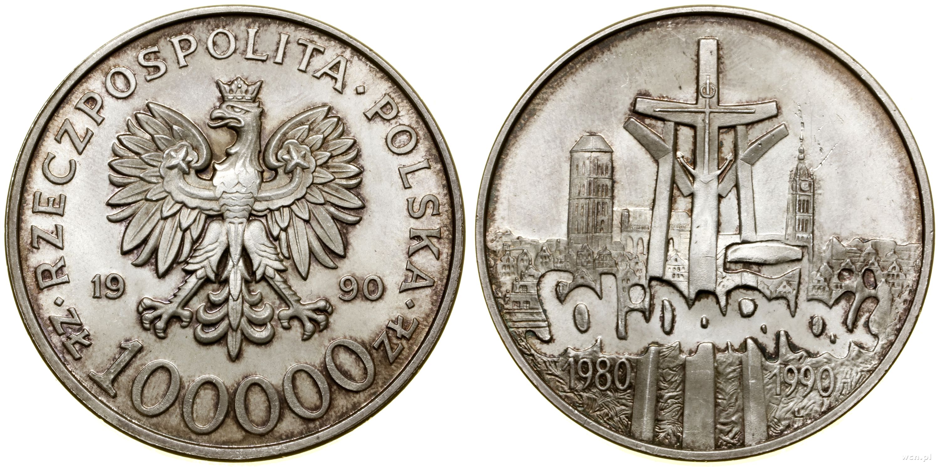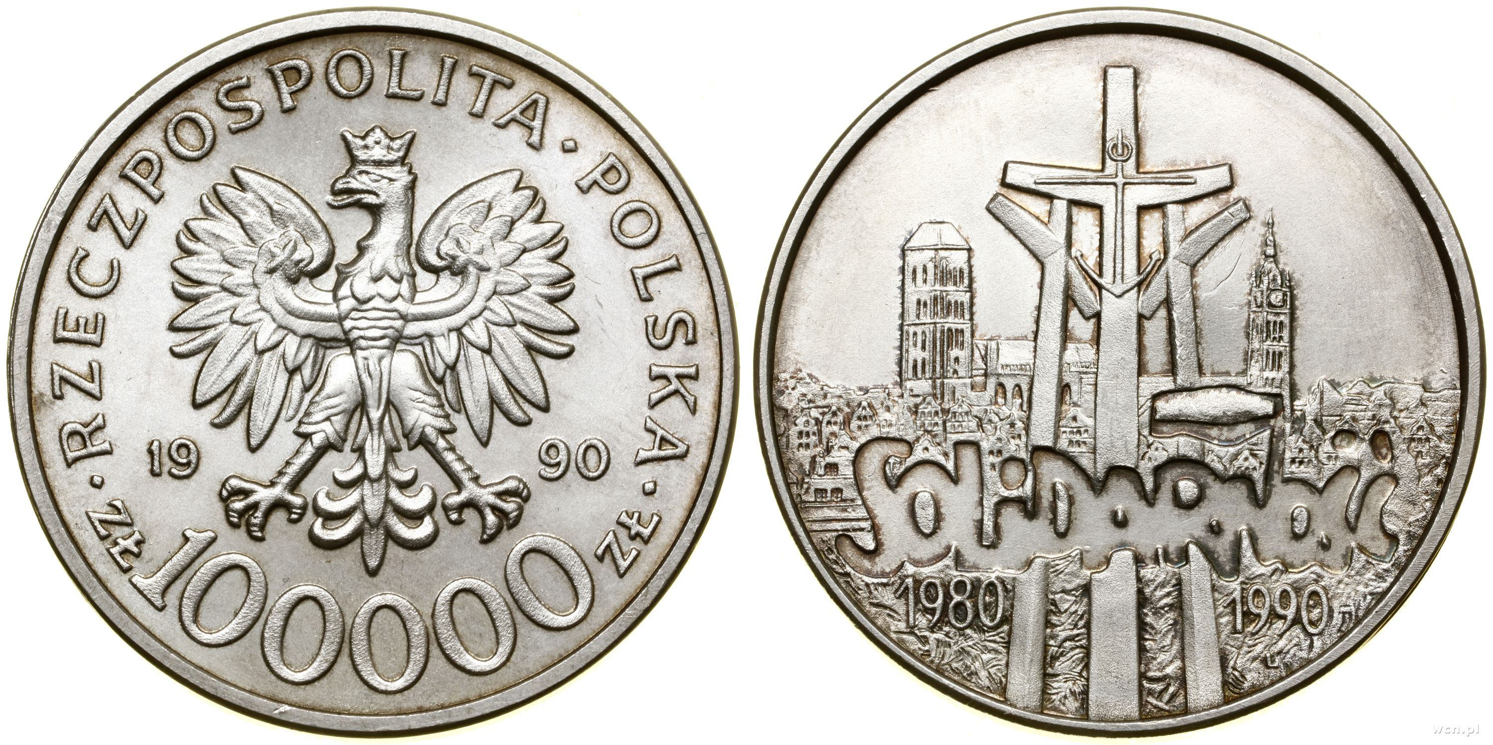 Solidarność 1980–1990, (typ B), na awersie ZŁ blisko nomi... | I |